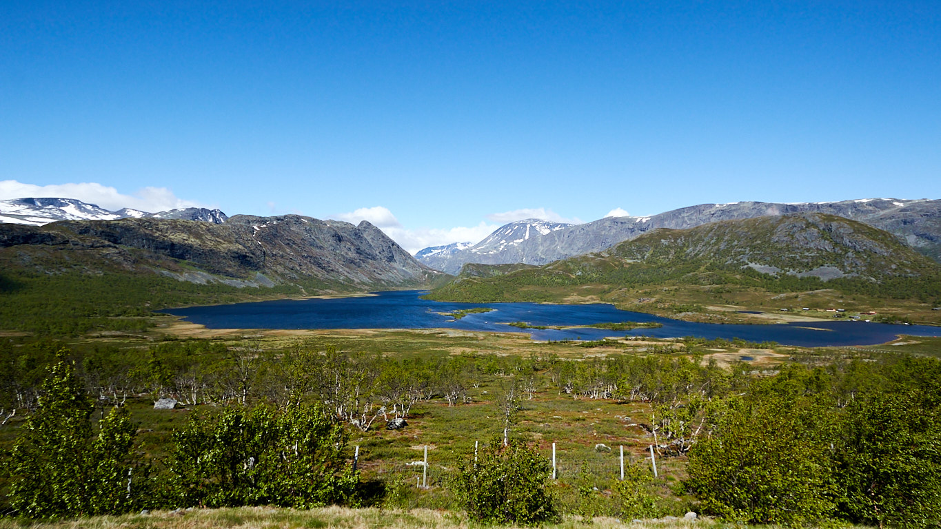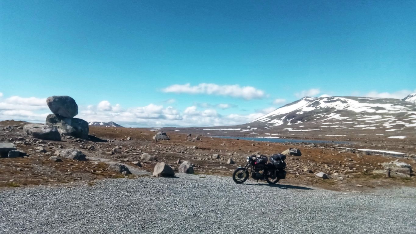 Frühstück gibts heute Morgen vom Büfett mit Blick auf die Stabkirche. Auf dem Weg zum Kraftwerk Vemork gibts wieder Naturkost vom Feinsten. Ein Highlight ist das Hochplateau Valdresflye mit 1389 Höhenmetern. Hab ich schon erwähnt, daß ich solche Hochebenen liebe? Ich habe es woanders gelesen, aber sinngemäß hätte es auch von mir sein können: die Fahrt durch diese Landschaft gibt einem das Gefühl zu fliegen. Und weil ich so verliebt in die Landschaft bin, kaufe ich mir noch ein Souvenier als anständiger Tourist, denn die Trolle wollen ja auch von was leben da oben. Seit dem Morgen macht mir ein vorhergesagter stürmischer Wind zu schaffen. Die AWO muß noch mehr kämpfen am heutigen Tag. So kommt es, daß ich stellenweise in Schräglage Geraden fahre und in Kurven fast aufrecht um die Ecke biege. Ein ganz schönes Geeiere ist das heute. Nach dem Hochplateau kommen auch noch große dunklen Wolken auf und ich packe mich wasserdicht ein. Den Fluten werde ich nicht weichen können. Doch wie durch ein Wunder bekomme ich keinen Tropfen ab und schlängle mich durch die Sturzbäche hindurch. Lediglich meine Wanderstiefel haben einiges an Spritzwasser auszuhalten. Es geht nichts über ein Paar anständige Wanderstiefel. 99% wasserdicht und man kann abseits der Piste auch schnell mal zu Fuß durchs Gelände robben. Machst du mit Motorradstiefeln nicht! Kurz vor 6 erreiche ich eines meiner letzten geplanten Ziele auf meiner langen Reise. Obwohl nur bis 18 Uhr geöffnet, mache ich bei der Empfangsdame ein trauriges Gesicht und meinte, daß ich da wohl Pech hätte. Sie erwiderte, ich könne die restlichen Minuten noch hinein und auch Fotos machen. Unentgeltich natürlich. Also flitze ich durch die Trubinenhalle und knippse alles kurz und klein. Vieles mit den Turbinen ist mir bereits aus Tyssedal bekannt. Nach der Hatz durch die Halle mache ich noch ein paar Außenaufnahmen und lasse mir Zeit, alles auf mich wirken zu lassen und mich mit der berühmten Geschichte um die Sabotageakte der Alliierten im zweiten Weltkrieg zu beschäftigen. Stichwort Schweres Wasser. Eine Stunde döse ich so vor mich hin, bis ich mich langsam mit dem Gedanken beschäftige, wie es nun eigentlich weiter geht. Lager aufschlagen, oder weiter fahren, da alle dunklen Wolken verflogen sind und man nun trocken ein paar Kilometer machen könnte? Und wenn weiter, wohin? Zu Oliver, eine Schwungscheibe wecheln, die nun ca. 2000km gehalten hat? Oder direkt nach Kristiansand zur Fähre nach Dänemark? Bei Oliver hätte ich nur kurz Hallo sagen können und hätte auch schon weiter gemußt. Und auf Scheibe wecheln hätte ich dann auch keine richtige Lust mehr, zumahl ich der rettenden Heimat immer näher kam. Einmal in Dänemark nimmt man dieses Land als Wegstrecke gar nicht mehr so richitg ernst, nach all den Kilometern. Die, sollte doch noch was passieren, rettenden Nordlichter sind nicht mehr weit entfernt. Dazu gesellt sich nach 4 Wochen eine gewisse Reisemüdigkeit und die Sehnsucht nach Ausspannen. Letzten Endes waren es diese Gedanken und die gerade zu läpischen gute 230km, die die Entscheidung auf Kristiansand haben fallen lassen. Oliver möchte ich schon kennen lernen, aber nicht im kurzem Vorbeifahren. Und mit der Schwungscheibe waren wir uns beide wohl schon einig, was so lang bis hier runter gehalten hat, daß hält die letzten paar Kilometer auch noch. Hoffe ich, duck und weg …