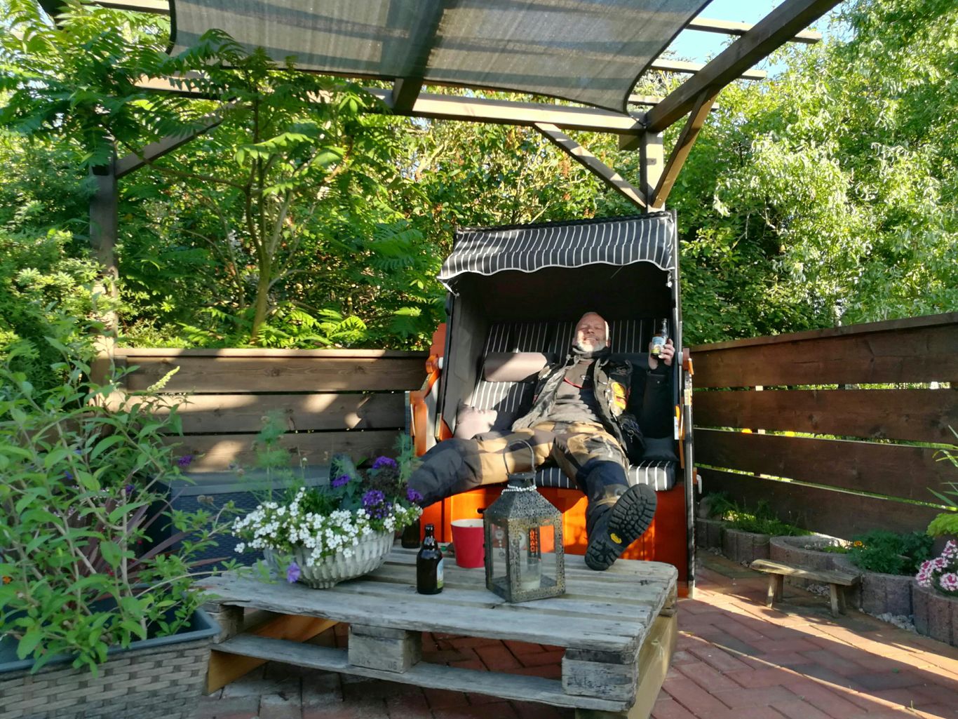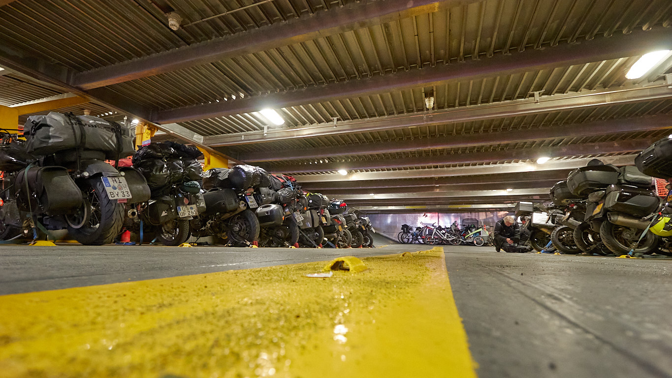 Erstmals in diesem Urlaub klingelt mein Wecker. Mein viel zu kurzer Schlaf wird um 6.30 Uhr unterbrochen. In 20 Minuten ist Zelt und Gepäck wieder verstaut und runter gehts zum Fährhafen nach Kristiansand. Zwei Fähren legen fast gleichzeitig ab und der Stau vom Terminal zieht sich bis in den Ort rein. Einmal kurz daran vorbei gehuscht und in die Reihe der bereits wartenden Biker eingereiht. Checkin, antauen, Frühstück fassen gehen, alles kein Problem. Wobei, doch. So viel widerwärtigen Kram hab ich schon lange nicht mehr gefuttert. Hat alles nach der gleichen Chemie geschmeckt und ich fühle mich an den Film von Louis de Funes „Brust oder Keule“ erinnert. Unsere Fregatte ist ein Schnellboot der Linie Fjordline. Die mögen scheinbar nur ein spezielles Wellenverhalten, um auf Speed zu kommen. Der erste Anlauf scheitert in einem jämmerlichen Rollen des Bootes, welches sicher bei einigen Passagieren eine gewisse Übelkeit hervorgerufen haben dürfte. Zum Glück hatte ich meinen Toilettengang da bereits hinter mir. Der Käpt’n erklärt ein technisches Problem und kehrt um. Dann wieder Kehrtwende und neuer Anlauf. Und diesmal klappts mit dem Anlauf. Mit fast 70 Sachen sausen wir über die See. Ich verschlafe die Überfahrt fast komplett, zu groß ist der Schlafmangel. In Hirtshals runter von der Fähre und ab auf die Bahn gen Süden. Irgendwann wird es mir zu langweilig und mich dürstet nach Kaffee und Kuchen. Also runter von der Bahn und schöne kleine Straßen übers fast ebene Land gefahren. Nur Kaffee wollte sich nicht so schnell finden lassen. Habens die Dänen nicht so mit Cafes? Kurz vorm Aufgeben findet sich doch noch was. Ich rufe Andre an, um mein eventuelles Etappenziel abzuklären. Leider gibts nicht viel zu klären, Heike erklärt mir, man hat abends Familienveranstaltung. Schade, also funke ich Koogs an und mach klar, daß sie schon mal die Marmelade in den Ofen schieben und die Dusche voll laufen lassen können. 19.30 Uhr ist touch down in Koog. Großes Willkommen (vielleicht nur gespielt), und ein Bier in die Hand. Ein Bier, für welches ich in Alta noch 10€ hinlegen mußte, und so teuer war, das man es am liebsten die ganze Zeit festgehalten hätte. Ein Bier also, welches sich so richtig genüsslich wegdrinken lässt, weil man nicht das Gefühl hat, das jeder Schluck 1€ wert ist und man sich um Hab und Gut drinkt. Dazu wird Grillfleisch auf den Grill gelegt und gegrillt, so daß das Grillfleisch richtig schön gegrillt schmeckt. Dazu lecker Bier, daß … schrieb ich ja schon. Meine Reise ist noch nicht ganz am Ende, aber ein paar Tage Auszeit gönne ich mir hier. Koogse hier und da ein bißchen rum, und lass mir die Sonne auf den Bauch scheinen. Zeit, um meine Erkältung weiter auszukurieren. Zeit, um Nicks Biervorräte auf ein überschaubares Maß zu bringen und Romys Kuchen wegzuputzen. Time, to go easy.