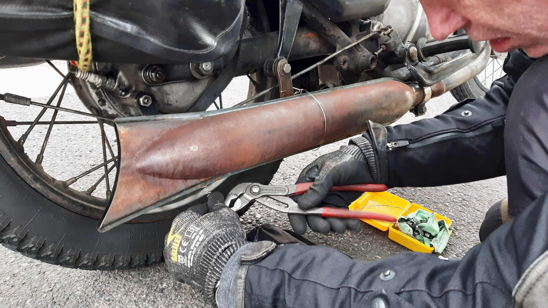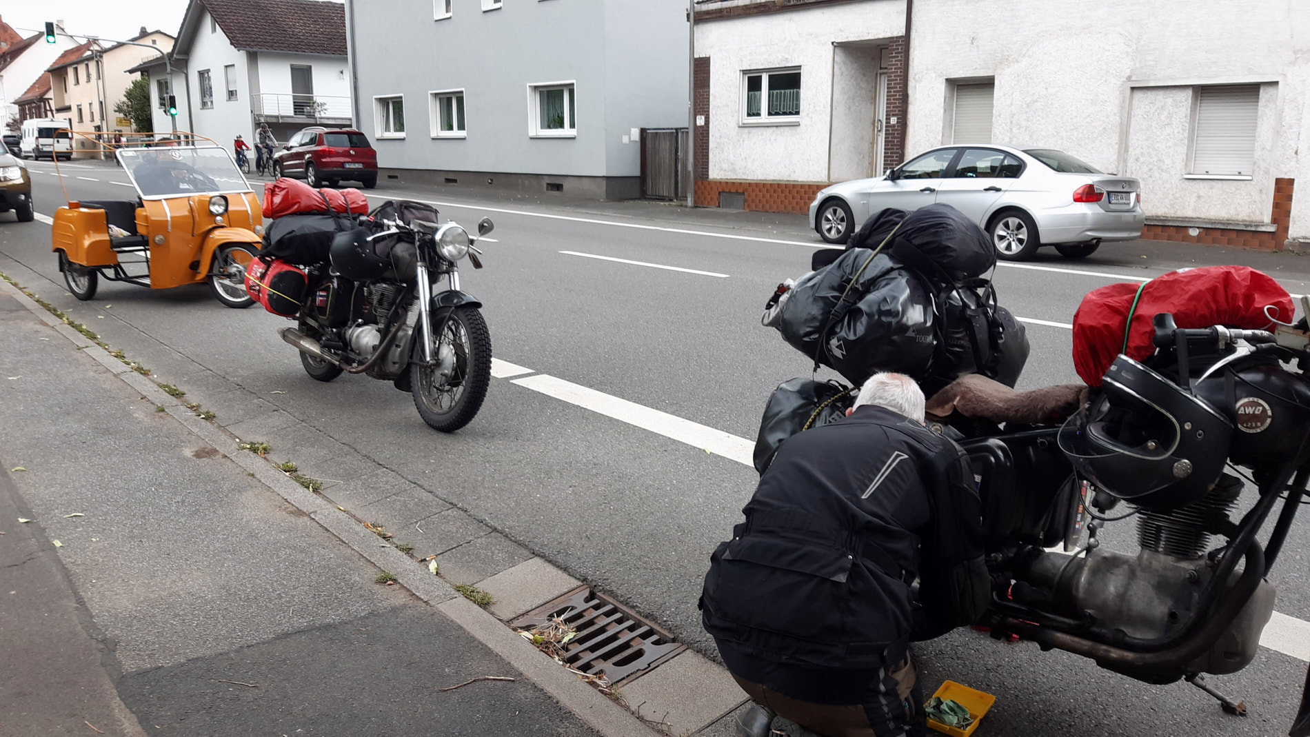 Erstes Ziel morgen wird Sandercycle in Biblis sein zum Auspuff schweißen. Hoffentlich weiß der wenigstens, daß wir keine BMW fahren …