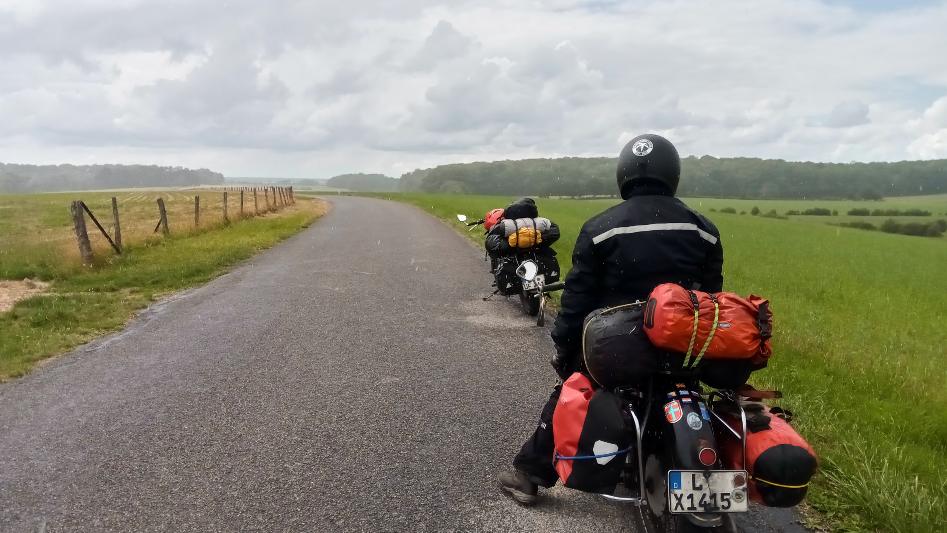 Schlimmer als der gestrige Abend hätte nur Dauerregen sein können. Keine Klamotten trocken, Zelt pitschmatennass, und alles muß so verstaut werden. Selbst der Versuch, mit dem Benzinkocher ein paar Stück Birkenholz zum Entflammen zu bekommen, ist kläglich gescheitert. Zumindest sind wir die erste Tageshälfte noch ein paar Kilometer trocken Richtung Champagne gekommen. Luxemburg hatte ich landschaftlich nie auf dem Schirm. Aber das muß ich grundlegend revidieren. Die Kleine Luxemburgische Schweiz bekommt von uns ein „sehr empfehlenswert“. Über kleinste Straßen geht es durch Belgien hinüber nach Frankreich. Wenn nicht die Autokennzeichen wechseln würden, bekäme man den Länderwechsel garnicht mit. Kein Schlagbaum, kein „Sie verlassen den wasweißich Sektor“, einfach nur schwupp, und schon gibts statt Brötchen Baguette, und Dornfelder trocken Champagner.