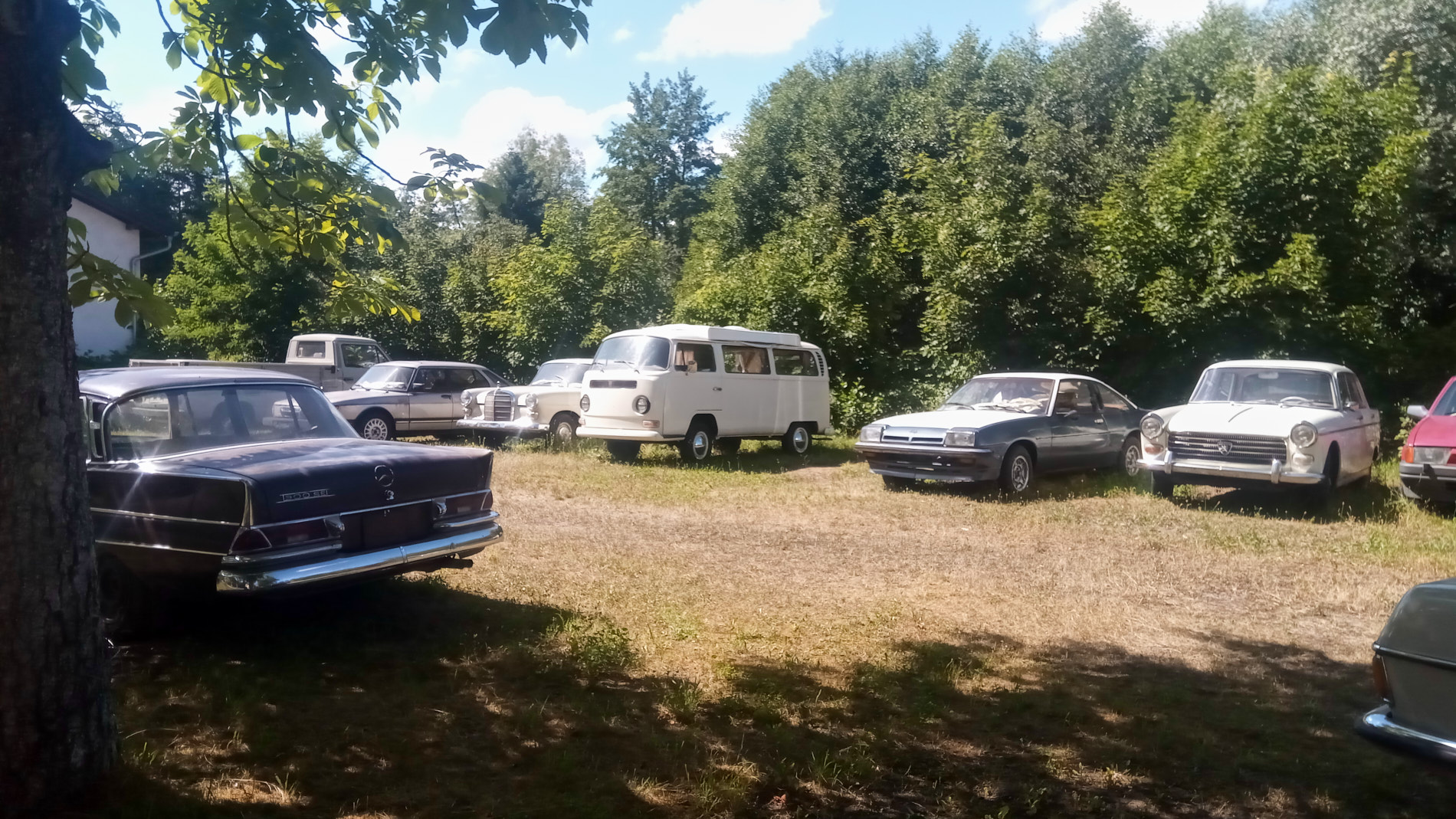 Als der nächste Tag erwacht und wir mit ihm, bin ich kurz verwirrt, wo wir sind, welcher Tag heute ist und wieso liegt mein Steppe auf der falschen Seite? Dann fällt mir wieder alles ein und auch alles, was ich durcheinander getrunken hatte. Hossa, ich brauche Wasser. Ingolf hat sich den Tag heute extra für uns frei genommen. Na hoffentlich bereut er das nicht, denn ich war schonmal in der Gegend und weiß, dass man gar nicht weit von hier hervorragend Schuhe kaufen kann. Also überrede ich Ingolf und Steppe mir meiner Route auf „kurviger“ zu folgen, ich will ganz sicher nur in ein oder zwei Schuhhäuser, meine Wanderstiefel sind wirklich reif für die Rente bzw. für solche Touren nicht mehr geeignet. Kleine Hommoge an meine Meindl: Ich danke euch! 15 Jahre und 25 Länder habt ihr mit mir ausgehalten. Nun sind sie schon lange nicht mehr wasserdicht und auf längeren Touren schmerzen die Füße, weil die Sohlen mehr als abgelaufen sind. Aber sie werden noch lange nicht begraben. Steppe und Ingolf sind anhand der Strecke nicht abgeneigt, meinen Plan durchzuführen und so tun wir das. Ingolf führt uns über den „Kalmit“, ein grandioser Aussichtspunkt, dann gehts weiter über die „Totenkopfstraße“ Richtung Hauenstein. Dort angekommen, stürze ich mich gleich in das erste Schuhhaus. Die Wahl fällt nicht schwer, denn die Marke steht fest und auch in etwa das Modell. Ich brauche nur ein Paar anprobieren und die Entscheidung steht. Meine Füße haben entschieden. Eine leichtere Variante als die Vorgänger, kein Vollleder, aber wasserdicht, damit aber eben auch etwas leichter. Als ich zu Ingolf und Steppe wieder stoße, sind beide überrascht, als sie den Karton sehen. „Schon fertig?“ Jupp, entgegne ich, ich habs wie Marcel gemacht. Wozu lange feilschen und suchen? Die sind´s! Also brauchen wir hier auch nicht mehr Zeit als notwendig verbringen und begeben uns wieder auf die Piste. An der Reichsburg Trifels bekomme ich meine „Lewwerknepp“ und weiter gehts, immer mir nach. Nur leider hing sich mein Navi-Handy doch unterwegs irgendwo auf, als ich mich dran gewöhnt hatte, einem Linienbus hinterherzufahren, der mich in einen Minibusbahnhof führte. Ganz selbstbewußt gab ich Gas, als mir der Irrtum bewusst wurde, meine Folgschaft brav hinterher und über kleinste Straßen noch eine Ehrenrunde. Das richtige Hinweisschild hatte ich mal wieder übersehen und als wir wieder auf der Strecke waren, aus der wir kamen, blieb mir nichts anderes übrig, als einzugestehen, dass ich keine Ahnung hatte, wie wir aus dem Kacknest rauskommen. Navi aufgehangen. Ingolf übernimmt die Führung und dann auf einmal, wenn mans nicht mehr braucht, zeigt mir das Mistding die Route an. Nun wäre ich reif für eine richtige Pfälzer Schorle, aber das hebe ich mir für den nächsten Besuch bei Ingolf auf, dann aber mit Wanderschuhen! Bei Ingolf an der Garage angekommen nehmen wir hier und da noch ein paar kleine Verbesserungen vor, der Popel aus dem Vergaser von Walli wurde schon vor dem Ausflug weggepustet und jetzt zaubert Steppe mit Ingolfs Unterstützung eine kleinere Düse in die zu große Hauptdüse. Funzt. Ich hänge mal wieder ein paar Sitzfedern ein, Ingolf hilft mit dem AkkuSchrauber ein paar neue Löcher für verschiedene Federn bohren. Dann noch die Lampe etwas nach unten strahlen lassen, bei zunehmender Dunkelheit hatte mir Steppe schon ein paar Mal zu verstehen gegeben, dass mein Licht blendig ist. Wird doch wohl nicht an der Streuscheibe aus Riga liegen?!? Der Abend klingt auch heute gemütlich bei Ingolf auf Balkonien aus. Ein super Tag war das, Danke Ingolf!
