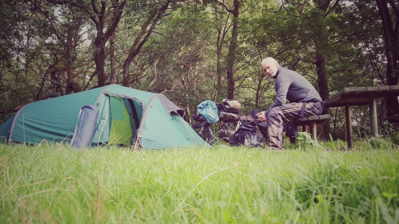 Ich mach mich somit allein nach Norwegen. Bin Bernde trotzdem dankbar für die Motivation, mich zum losfahren bewegt zu haben. Über die Bahn gehts ein Stück nach Dänemark rein und dann gemächlicher auf der Landstraße weiter. In der Mitte der dänischen Landzunge kreuze ich Silkeborg in dem wohl schönsten Landstrich des kleinen Landes. Erinnert ein bißchen an eine Mischung aus Muldental und Seenplatte. 100km vor Hirtshals in einem Waldstück schlag ich auf einem Rastplatz, der etwas von Bäumen gedeckt ist, mein Nachtlager auf. Die Sonne verabschiedet sich hinter den Horizont und die Nacht deckt alles mit Stille zu.