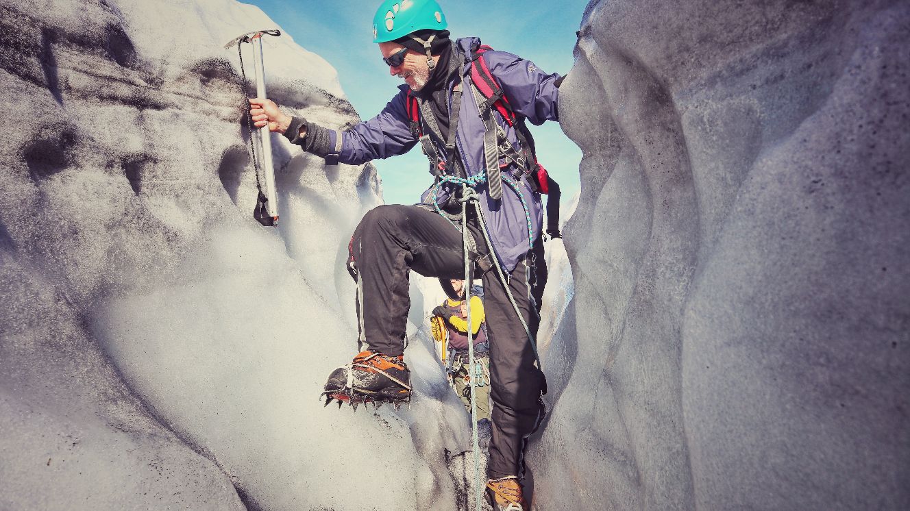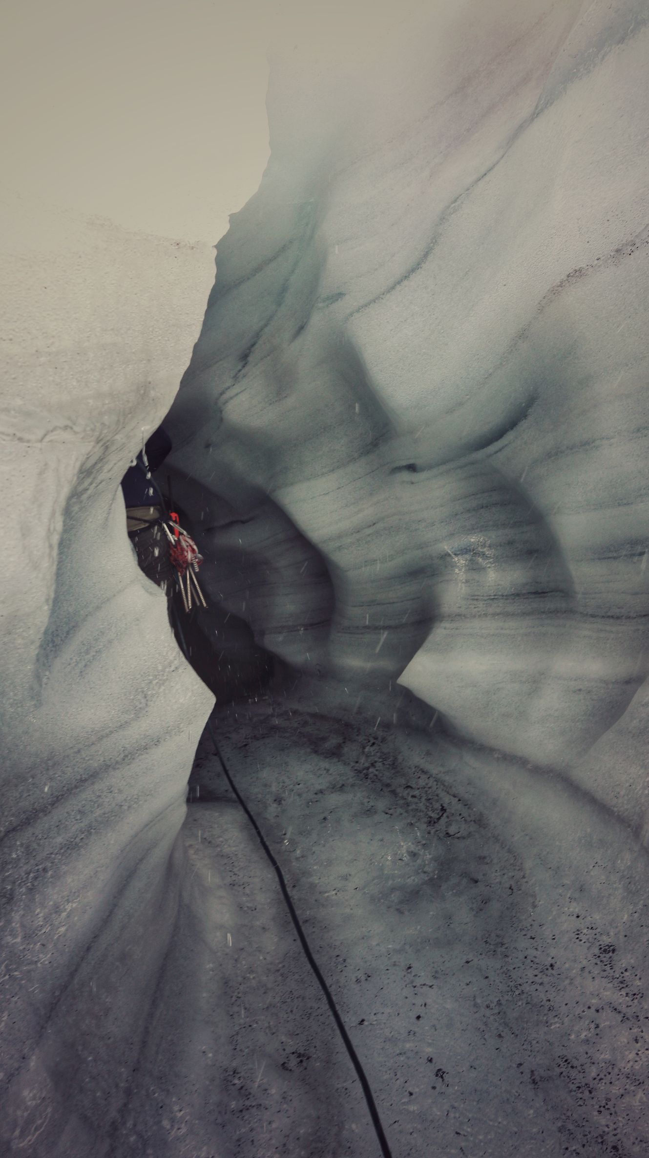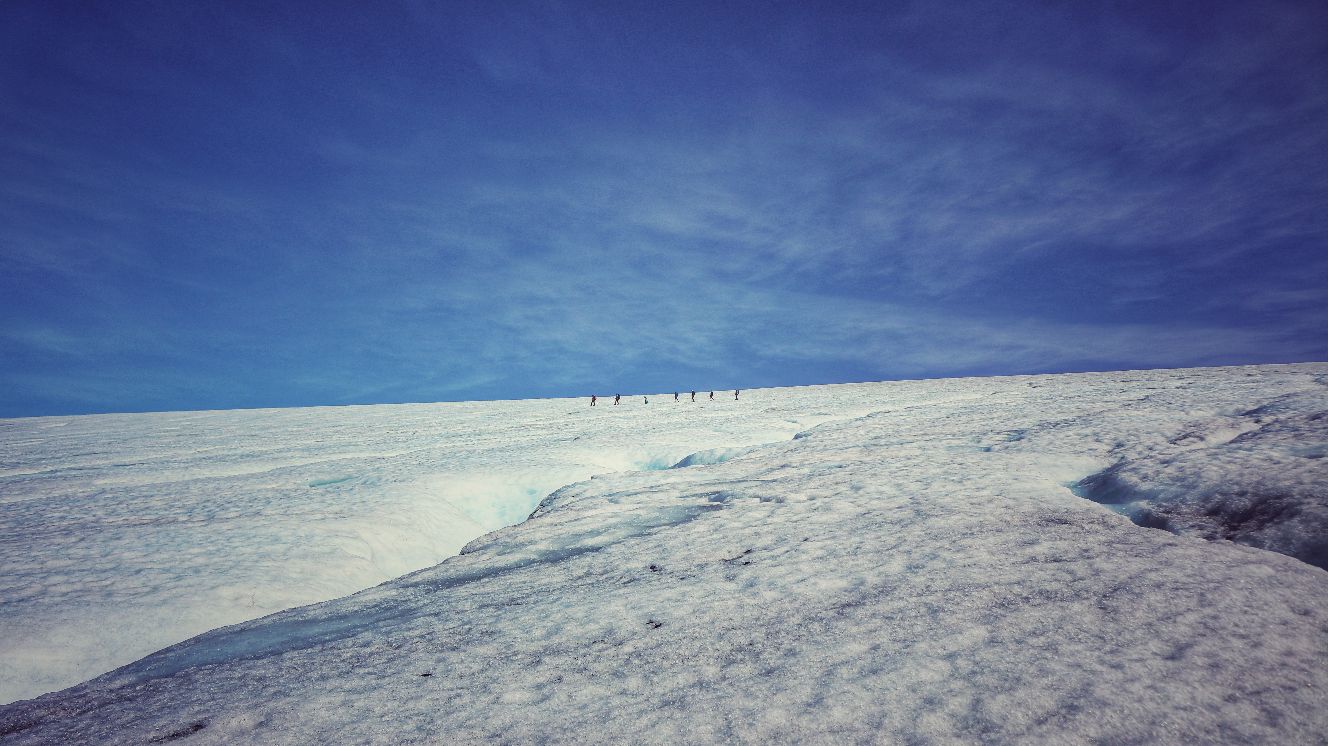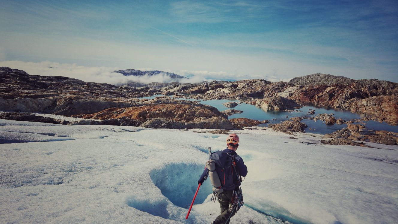 Hatte ich ja noch nicht erwähnt: am Freitag in Odda hatte ich einen kurzen Plausch mit zwei Berlinern an der Tankstelle. Waren mit so einem neuen UAZ da, der von außen aber immer noch wie vor 60 Jahren ausschaut. Wisst schon, der russische Bulli. Nach dem üblichen bla bla“wo kommst’n her, wo willst’n hin“, und was man bei dem Regen am Wochenende anstellen könnte, offenbarten sie mir, sie hätten eine Gletschtour gebucht, drüben bei Jørdal. Und ich so, ja ja, nee nee, und sicher toll, aber ich hab mir nun mal Trolltunga vorgenommem. Aber der Gedanke bohrte übers Wochenende immer mehr. Wann hat man schon mal die Gelegenheit, und dann noch so dicht vor der Nase. Nur 60km von Odda weg. Also hab ich gestern, noch voll von Trolltunga euphoriert und von der sonnigem Wettervorhersage pepuscht, spontan eine Gletscherführung gebucht. Dies war gewissermaßen das Sahnehäubchen auf Trolltunga. Absolut fantastisch! Anstrengend zwar, aber auch ein bleibendes Erlebnis. Wichtig war die gebotene Ausrüstung mit richtigen(!) Bergstiefeln und Spikes, oder Steigeisen. Nur mit sehr guten Wanderstiefeln wäre man nicht weit gekommen. Und zwischen den tiefen Furchen hätte man sich ohne Guide auch kaum wieder raus gefunden. Sicher war diese Tour nur ein kurzer Abriss, was möglich ist auf einem Gletscher, aber für das erste Mal war es traumhaft. Dazu die Weitsicht über den Wolken. Reine Gehzeit war vielleicht 4 Stunden, was auf dem Eis aber schon eine Leistung ist. Mir hats nach dem gestrigen Wandertag jedenfalls gelangt. Die Füße brennen und die Knie sind dick. Wenn ich in den Schlafsack krieche, reiße ich das halbe Zelt mit ein, weil ich mich nicht mehr bewegen kann. Das Spass was kostet, wissen wir alle. Manchmal schmerzt Spass aber auch unheimlich. War geil heute, aber jetzt fallen mir die Klüsen zu. Nacht!