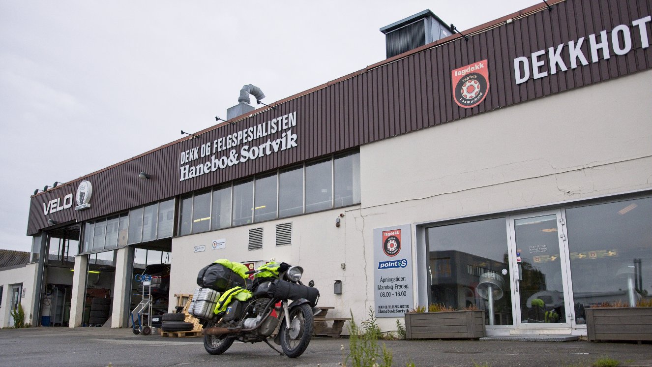 Ich fall vom Glauben ab. Eine Werkstatt, die noch nie nicht so ein Motorrad gesehen hat schraubt da ohne mein Zutun dran rum? Fragen nicht mal? Aber sie habens getan, und richtig! Etwas perplex zahle ich meine Rechnung und verabschiede mich mit einem Tusen takk!
