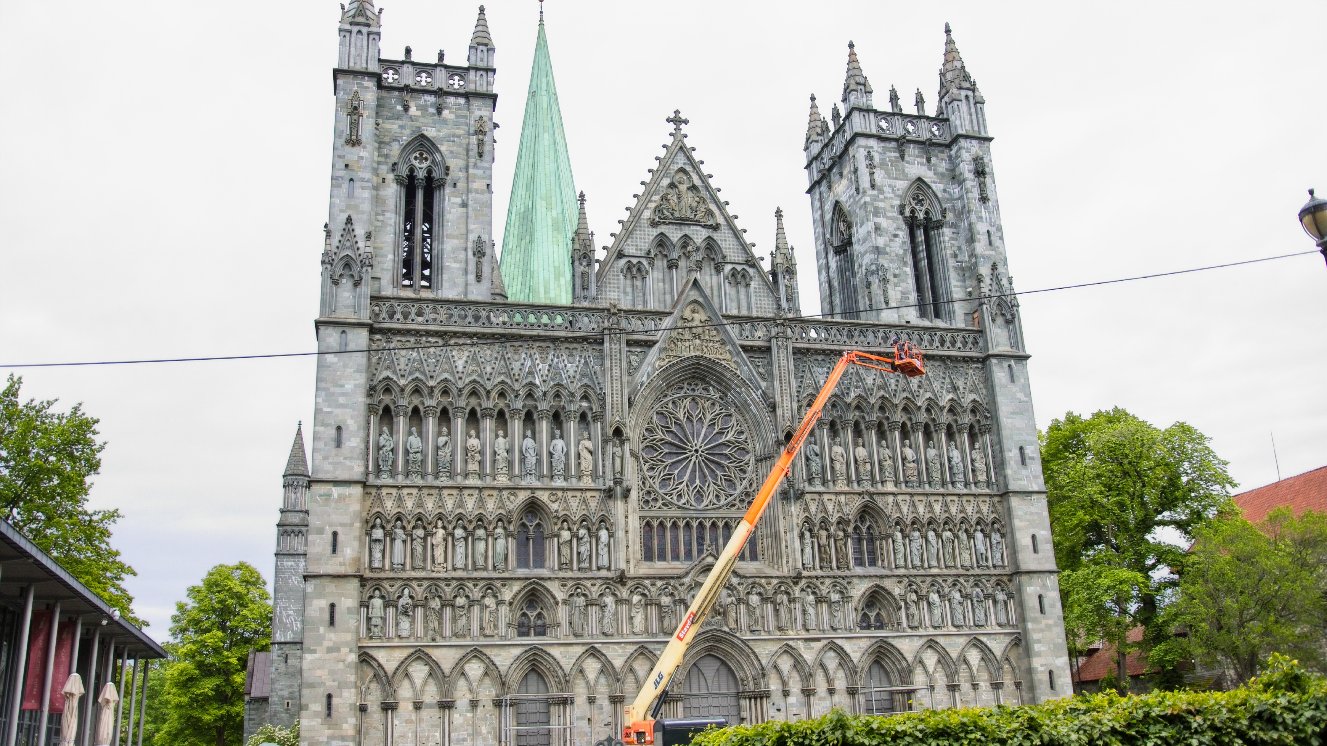 Meine AWO hat jetzt Rennregenreifen. Holla, die Waldfee, jetzt kann ich es wieder krachen lassen. Zunächst mal lasse ich mich allerdings dazu hinreisen, kurz in die Altstadt zu düsen. Wenn man schon mal in Trondheim ist. Bis jetzt sah ich nur Schnellstraßen und Gewerbegebiete. Es soll da einen schönen Dom geben und vielleicht noch ein paar andere Hingucker, die ich vom Motorrad aus bestaunen kann. Da, der Dom, vorn rechts abbiegen, schönes Foto machen, weil regnet grad nicht, und weiter schauen. Und, nichts freut einen Fotografen mehr, als wenn das schöne Antlitz des Trondheimer Doms mit einem orangefarbenen Baufahrzeug und ausgefahrener Plattform die Front des selbigen verziert. Könnt ich glatt den ganzen Film verknippsen. Dann, um die Ecke rum, die Trondheim Bakeri. Ok, das rettet die Situation. Zwei Stück Kuchen und ein Kaffee, dann hab ich aber auch schon wieder genug von Stadtgucken in Motorradklamotten. Zumal der Regen wieder einsetzt und bis in die Abendstunden nicht mehr aufhören wird. Nächste Etappe ist Runde, gesprochen Ründe. Skandinaviens südlichste Brutkolonie. Hab da schon interessante Sachen von gehört und hoffe nun, selber was anständiges vor die Linse zu bekommen. Es ist allerdings ein gutes Stück von Trondheim weg und der Regen setzt mir mehr und mehr zu, bis ich die Weiterfahrt abbreche. Suche mir den nächstgelegenen Zeltplatz, und freue mich, so zufällig wieder ein feines Fleckchen Erde kennen lernen zu dürfen. Irgendwo zwischen Trondheim und Ålesund am Fjord auf einer Halbinsel gelegen. Kleine schmale Straßen meandern durch den Wald. Hatte ich lange nicht, meandern. Gell? Keine Hauptstraße in der Nähe, absolute Ruhe. Ich nehme natürlich wieder eine Hütte, denn preislich liegen wir hier schon unter der Hälfte von denen auf den Lofoten. Und endlich schlafen …