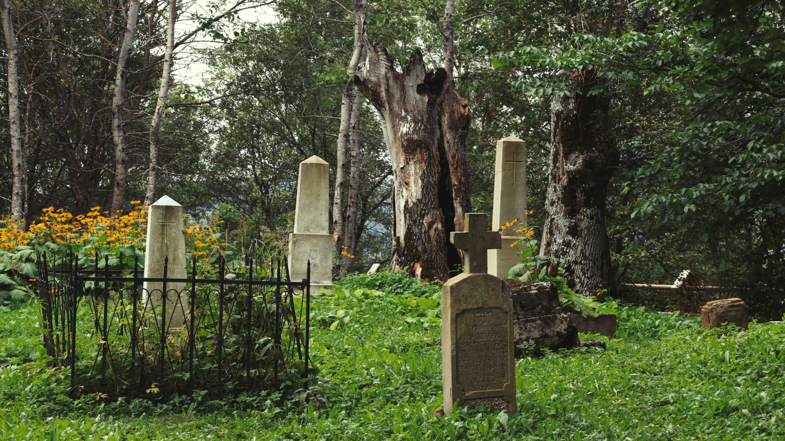 Drittes und letztes Ziel erweist sich als Friedhof. Einige der wenigen Grabsteine weisen Sterbejahre um die 20er und 30er Jahre des letzten Jahrhunderts auf. Aber auch von 2008. Und hier steht sogar mal in Englisch auf dem Stein, woher die Person kommt. Nach dem Krieg nach Deutschland gekommen, in den 50ern nach Australien ausgewandert, und auf Wunsch in der alten Heimat beerdigt. Wäre der Friedhof nicht mit einem modernen Holzzaun umgeben, das ganze hätte schon einen leicht grusligen Eindruck machen können mit den Grabmalen so mitten in der Wildnis.