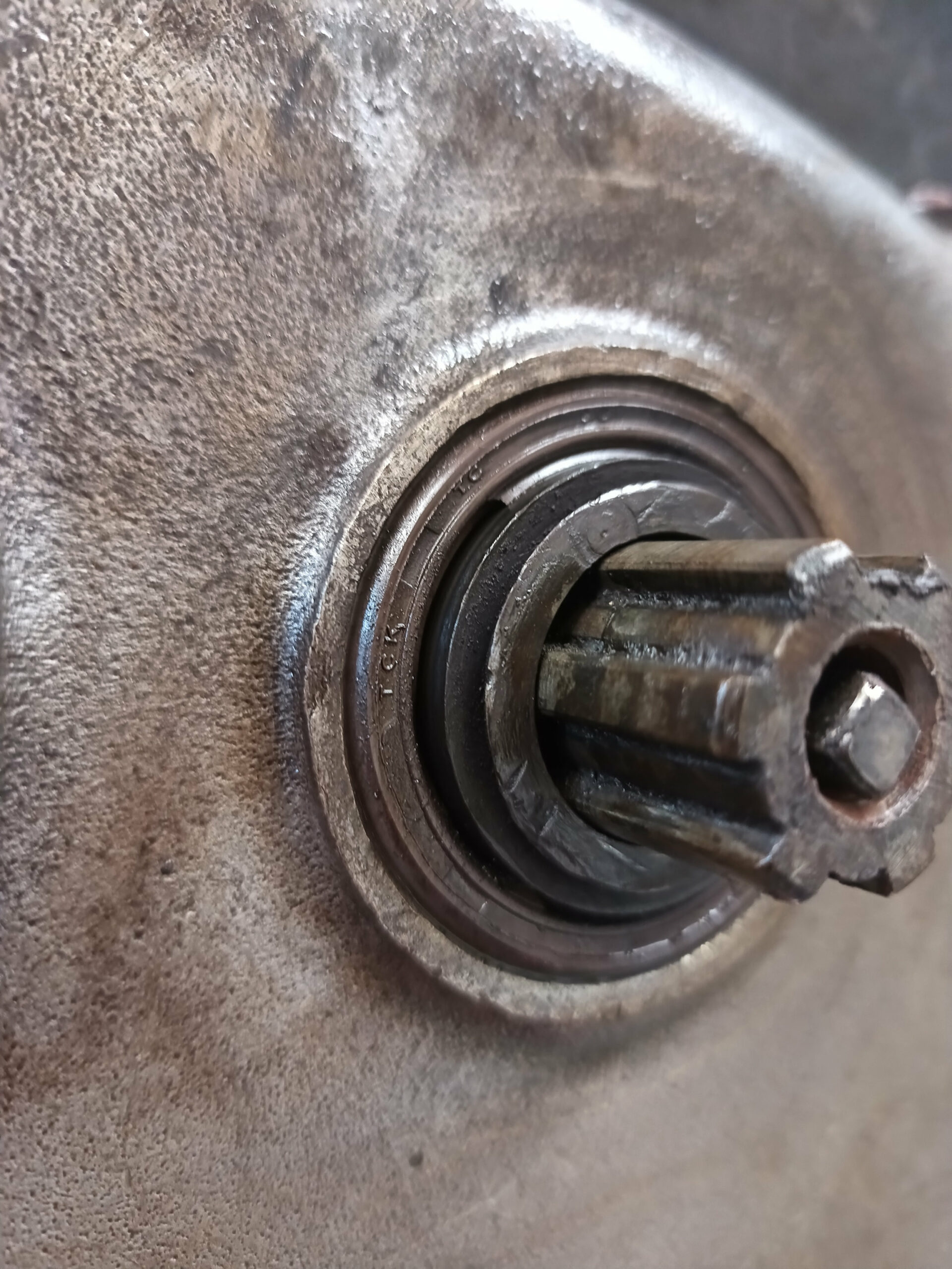 Naja, sie lebt noch, und auch ganz gut. Dennoch, der Patient kam auf den Tisch und Motor und Getriebe wurden entweiht. Ähm, entzweit. Aha, kleine Ursache, große Wirkung: der Haltering auf der Antriebswelle des Getriebes hatte einen Grat, welcher die Lippe des Wellendichtrings zu Kleinholz machte. Ein Schliff mit dem Dremel und einen neuen Wellendichtring eingesetzt – für den sich mein Freund Scholle extra auf den Weg gemacht, um zur Auftreibung eines neuen beizutragen – sollte das Problem hoffentlich für den Rest der Reise beseitigen.