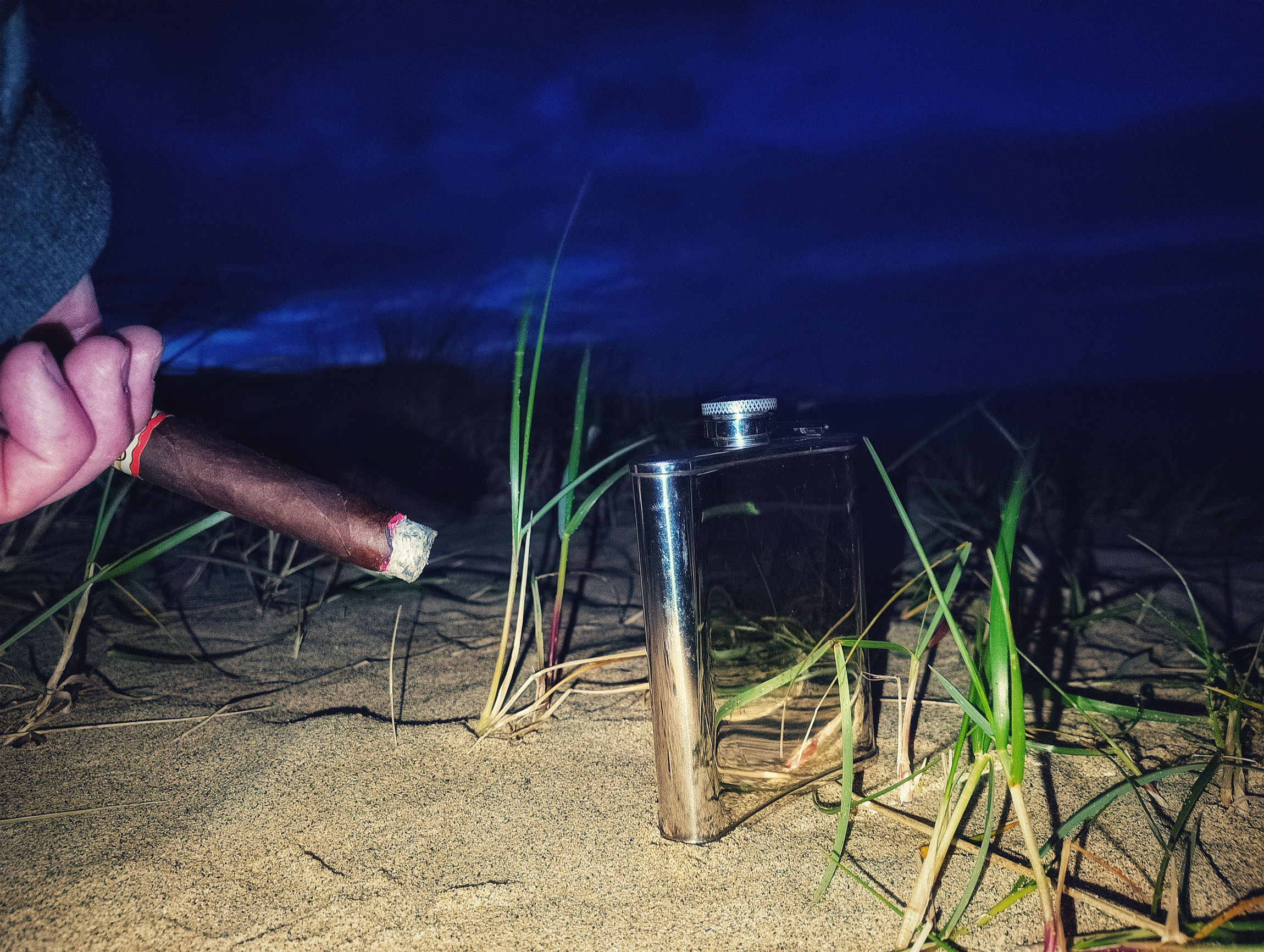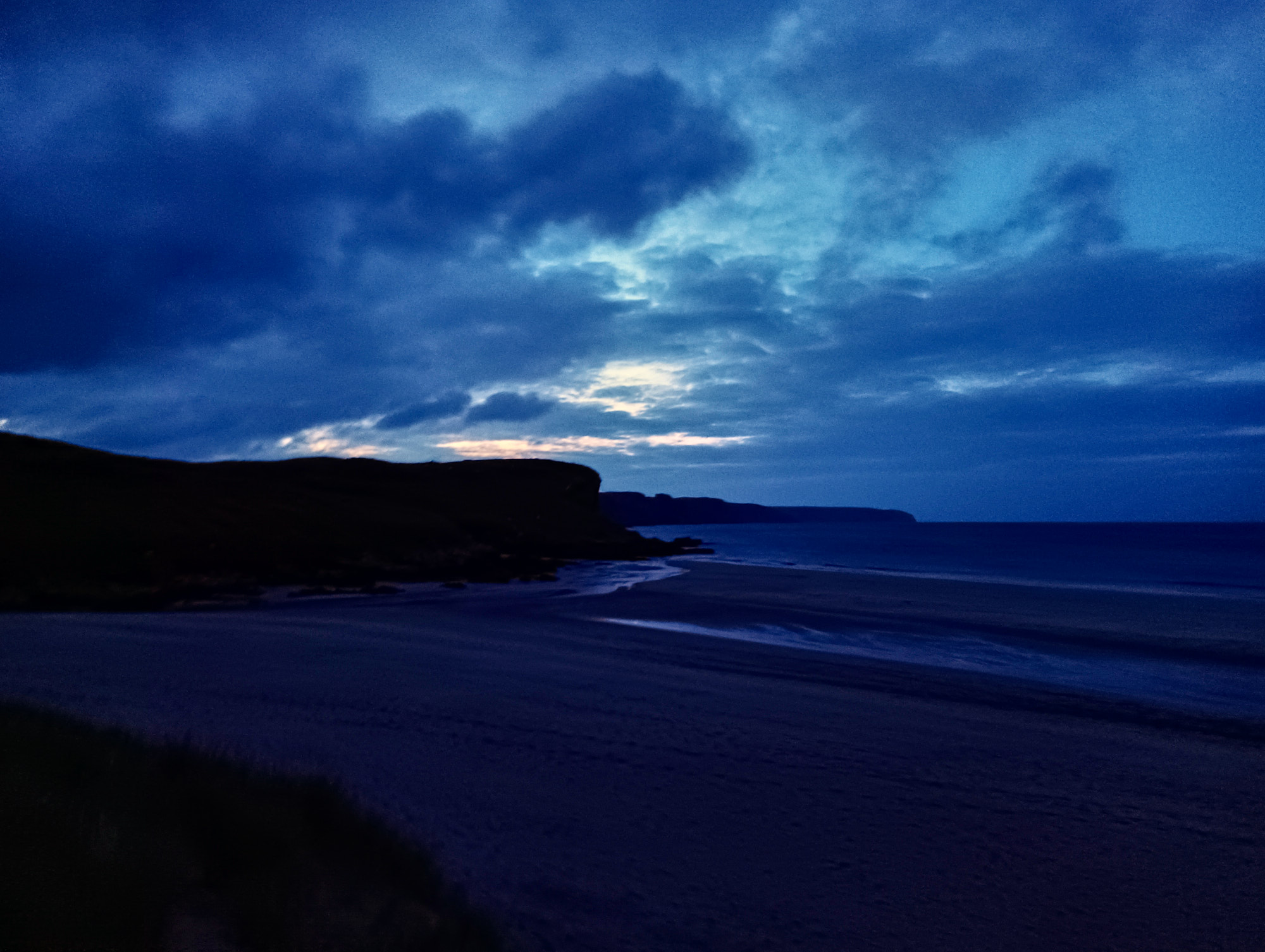 Als alle Klamotten verstaut sind, zücke ich eine Zigarre und meinen Flachmann und spaziere über die Düne zum Strand. Ich finde die Romantik dort wieder. Viel sieht man nicht mehr, aber trotzdem ist es ein wunderbares Gefühl, hier auf den Hebriden stehen zu dürfen und dem Meeresrauschen lauschen zu dürfen. Während ich diese Zeilen schreibe, kommt auch noch das Rauschen des Regens hinzu. Es juckt mich nicht. Licht aus, und gute schöne Nacht!