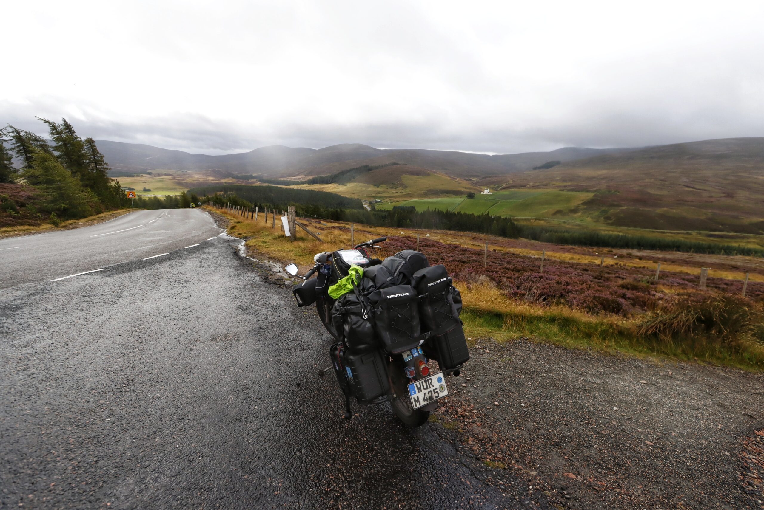 Ein Baum, noch ein Baum, ich glaub es kaum. Man nennt es Wald. Nach 4 Tagen auf Shetland , eine Insel, die wirklich ihre Reize hat, nun wieder gewundene Straßen durch üppiges Grün. Gegen 7 Uhr verlasse ich die Fähre, finde schnell den Weg aus Aberdeen, und begebe mich auf Nebenstraßen Richtung Highlands. Genauer gesagt, dem zweithöchsten Berg Schottlands, oder gar Britanniens. Das viele Baum, also Wald, hört schlagartig auf, wie die Straße beginnt, sich die kahlen Berge hoch zu schrauben. Ein imposanter Mix aus Weit- und Nichtweitsicht, je nach dem, ob grad Sonne oder Wolken die Oberhand behält. Es gibt auch Sonne und Regen gleichzeitig. Leider ist es auch ein sehr stürmischer Tag. Kurz vor dem ersten Etappenziel schmeißt mich der Wind in einer Kurve fast zu Boden. Am Cairngorm Car Park ist eine Bezahlschranke und ich kehre wieder um. Weiter unten am Loch Morlich ist es wesentlich gemütlicher, fast sommerlich. Ich befreie mich von den Regenklamotten und genieße bei selbst gebrühtem Kaffee die wärmende Sonne und die Aussicht auf die Berge. Wobei diese meist in Wolken gehüllt sind. Zeit, sich Gedanken zu machen, wohin es nun eigentlich gehen soll. Irgendwie nordwestwärts bis zur Küste. Vielleicht sogar bis zur Fähre nach Ullapool, um gleich noch auf die äußeren Hebriden überzusetzen? Ich checke die Abfahrtzeiten, aber auch einige Plätze zum Wildcampen. Nicht nur, weil das unheimlich schön sein kann, sondern auch, weil die Kosten auf den Shetlands leicht aus dem Ruder gelaufen sind. Die Fähre wird knapp, aber ich setze mich nicht unter Druck. Wenn ich rechtzeitig da bin, kann ich ja mal den Schaffner nach einem Ticket fragen, falls die Fähre noch im Hafen liegt. Bis Inverness hat die Straße schon fast Autobahncharakter und es gibt kaum Nebenstraßen, um den Trubel zu entgehen. Augen zu und durch. Hinter Inverness geht es wieder gemächlicher zu und die Natur wird auch wieder imposanter. In Ullapool angekommen winkt mich der Meister des Check-in am Fährhafen gleich heran. Da ich noch kein Ticket habe, solle ich zum Schalter gehen, es ist noch genügend Zeit bis die Fähre ablegt. Oder anders gesagt, die Fähre ist noch nicht mal da. Ok, nun also doch Hebriden. Muß ich neue Plätze fürs Wildcampen studieren. Im Nordosten der Insel wird ein wunderbarer Platz beschrieben. Strategisch im Nordosten auch günstig gelegen, weil mir das Land im Rücken etwas den Wind abhält. Auf der nicht ganz dreistündigen Überfahrt darf ich das erste Mal in meinem Leben Delphine in freier Wildbahn beobachten. Leider waren sie viel zu schnell wieder weg, als das ich sie im Bild hätte festhalten können. Ein Highlight des heutigen Tages, wenn auch viel zu kurz. Von Stornoway sind die 24km bis zum gewünschtem Campground schnell abgespult. Kurz Richtung Strand abgebogen, bietet sich mir ein kleiner Parkplatz in einer schmalen Bucht mit Sandstrand. Es gibt sogar ein Toilettenhäuschen. Und das aller schärfste: ich bin alleine. Flugs baue ich mein Zelt auf, bevor es nichts mehr zu sehen gibt. Die Dämmerung ist bereits weit voran geschritten. Das Zelt steht und ich befülle gerade die Matratze mit Luft, da biegen auf einmal zwei Camper auf den kleinen Platz ein. Die Türen gehen auf und es springen 3 schreiende Kinder heraus und rennen zum Strand hinunter. Ein kläffender Hund darf nicht aus dem Auto. Ihm wird das in deutscher Sprache klar gemacht. Die Erwachsenen stiefeln nun ebenfalls an mir vorbei, ohne ein Wort des Grußes zu erheben. Und so verschwindet die Romantik irgendwo im Dunkel der Nacht …