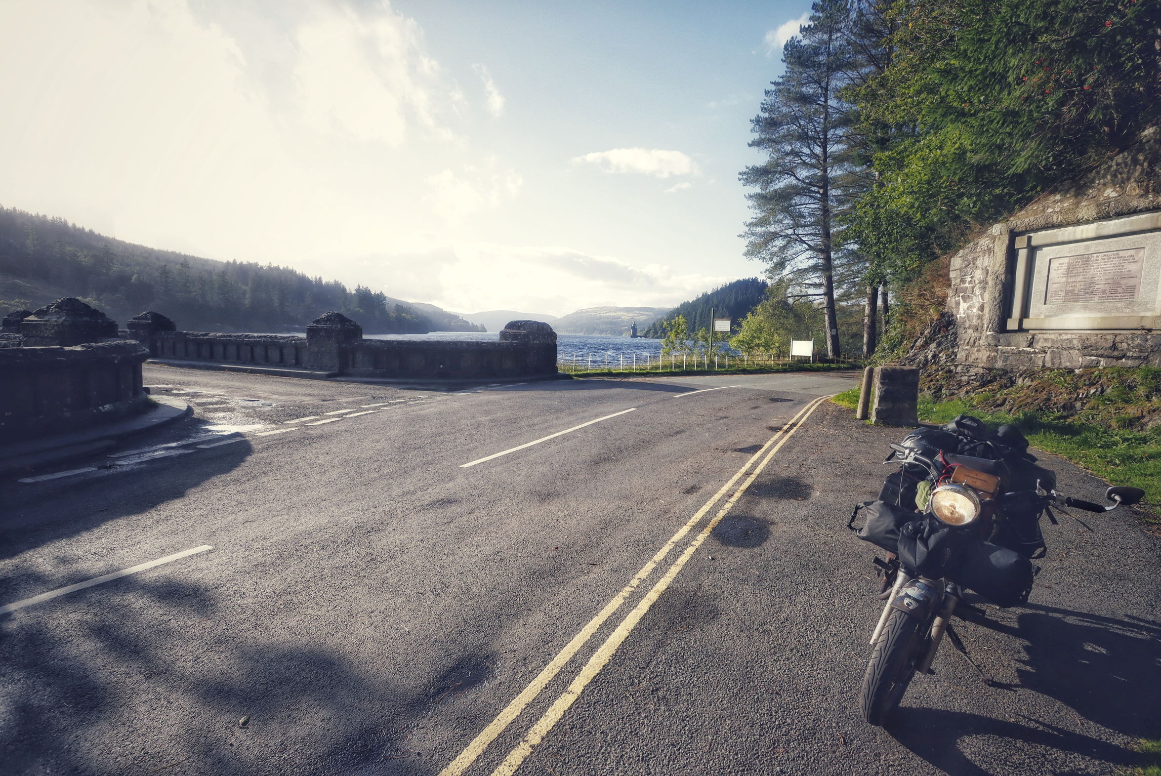 Im Kopf war also klar, wo nun die Reise hingeht. Ein paar Gründe seien doch genannt. Da ist zu einen der unheimliche Anteil an Splitt auf den Straßen, welcher vor allem in der Mitte der Fahrspur liegt. Das strengt unheimlich an, weil man in Kurven konsequent die Spur halten muß und nicht über die gesamte Breite der Fahrbahn treiben darf. Ich könnte nachts auf den Straßen gar nicht fahren, weil man dann gar nicht mehr sieht, wo Splitt liegt. Im Zuge dessen ist die rechte Hand die ganze Zeit am Handbremshebel und findet kaum Entspannung. Es ist, glaub ich, das erste mal, daß ich einen blauen Daumenballen vom Bremsen habe. Mit Scheibenbremse … hab ich aber nicht. Sicher hat mir auch das Wetter langsam aber sicher den Zahn gezogen. Dabei waren die letzte 4, 5 Tage gar nicht mal so schlecht. Für britische Verhältnisse wohl schon fast Hochsommer. Nur, Sturmböen auf schmalen Bergstraßen, dazu Regen satt, wie heute, macht mich eben schneller mürbe, als wenn ich nur mit einer Widrigkeit zu kämpfen habe. Das sind sicher Punkte, da kannste jammern oder stehst sie durch. Aber es gibt ein Kriterium, das primär bestimmt, wie weit man das Spiel treibt: das ist der Finanzrahmen. Und der sagt gerade eindeutig “Geh nicht über Los! Geh direkt nach Hause!”. Es sind schließlich noch ein paar Kilometer, die nur mit Benzin bewältigt werden können, am besten mit bezahlten Benzin. Und eine Fähre will auch noch finanziert werden. Last, but not least, will ich mein Hinterreifen nicht wieder für ‘de luxe’ Kosten im Ausland wechseln, dann sollte ich ihm genug Britannien zugemutet haben und hoffen, daß er mich wenigstens mit den letzten Millimetern Kontur noch nach Hause trägt.