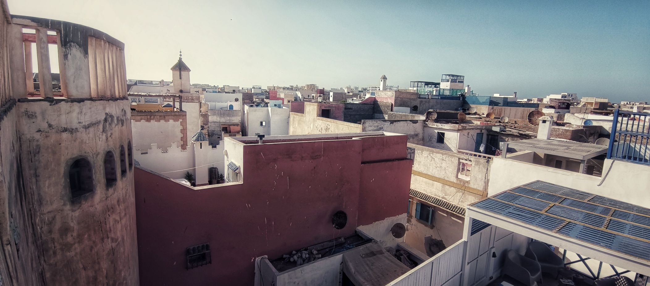 Nach Einwerfen diverser legaler Drogen und Vitamine sind zumindest die Gliederschmerzen wieder verschwunden. Was bleibt, ist ein Grummeln im Bauch und ein leichtes Schwindelgefühl, welches mich seit meiner Kindheit bekleidet und mir hin und wieder vorgeworfen wird. So machen wir uns mit dem Tags zuvor besorgtem Mietwagen auf in Richtung Essaouira. 170km durch nichts und eine handvoll Ortschaften. Fichte fährt, und es obliegt mir, die Rolle des Querulanten zu übernehmen. „Mir ist schlecht!“, „Wann sin’mern da?“ und „Ich muß mal!“. Der vielen Polizeikontrollen wegen fahren wir sehr gediegen und mit Kaffeepause dem Atlantik entgegen. In Essaouira angekommen, wird uns beiden dann doch ein wenig schlecht. Die gebuchte Unterkunft innerhalb der Medina entspricht leider überhaupt nicht den Bildern bei booking.com und das Zimmer ist eher eine Buchte oder ein Abstellraum mit miefigem Geruch, einem 1,20m(?) breitem Bett(?), und nur 1m daneben die Sitzkeramik, welche lediglich durch eine Gardine vom Bett getrennt ist. Das ist zu zweit schon hardcore, und so schauen wir uns nach einer anderen Mögleichkeit um. Diese findet sich knapp 2km ausserhalb der Medina, aber immer noch im selben Ort. Wir werden herzlich willkommen geheißen, jeder bekommt sein eigenes Bett, und die Unterkunft ist mit 3 Zimmern, Küche, Bad und Balkon äußerst geräumig. Nach einer sehr ausgedehnten Einweisung bezüglich Cafés und Restaurants in der Umgebung nehmen wir zur späten Stunde in einem Imbiss noch jeder eine Tagine zu sich. Zitat Internet irgendwo: „Typischerweise ist eine Tagine eine reichhaltige Mischung aus Fleisch, Geflügel oder Fisch und enthält meistens Gemüse oder Obst.“. Ob mir das bei meinem grummelnden Bauch bekommen wird, steht auf einem anderen Blatt. Oder im gut ausgewähltem Reiseblog.