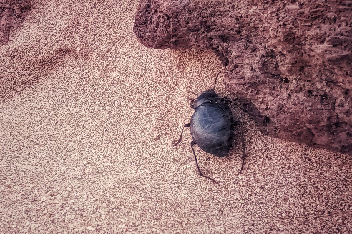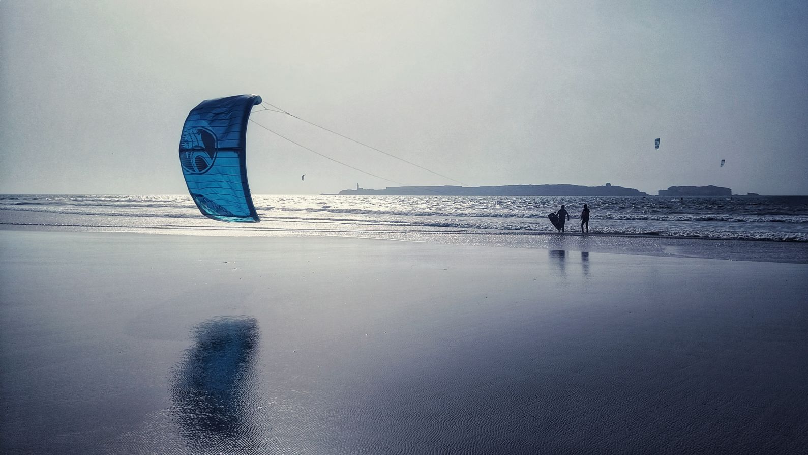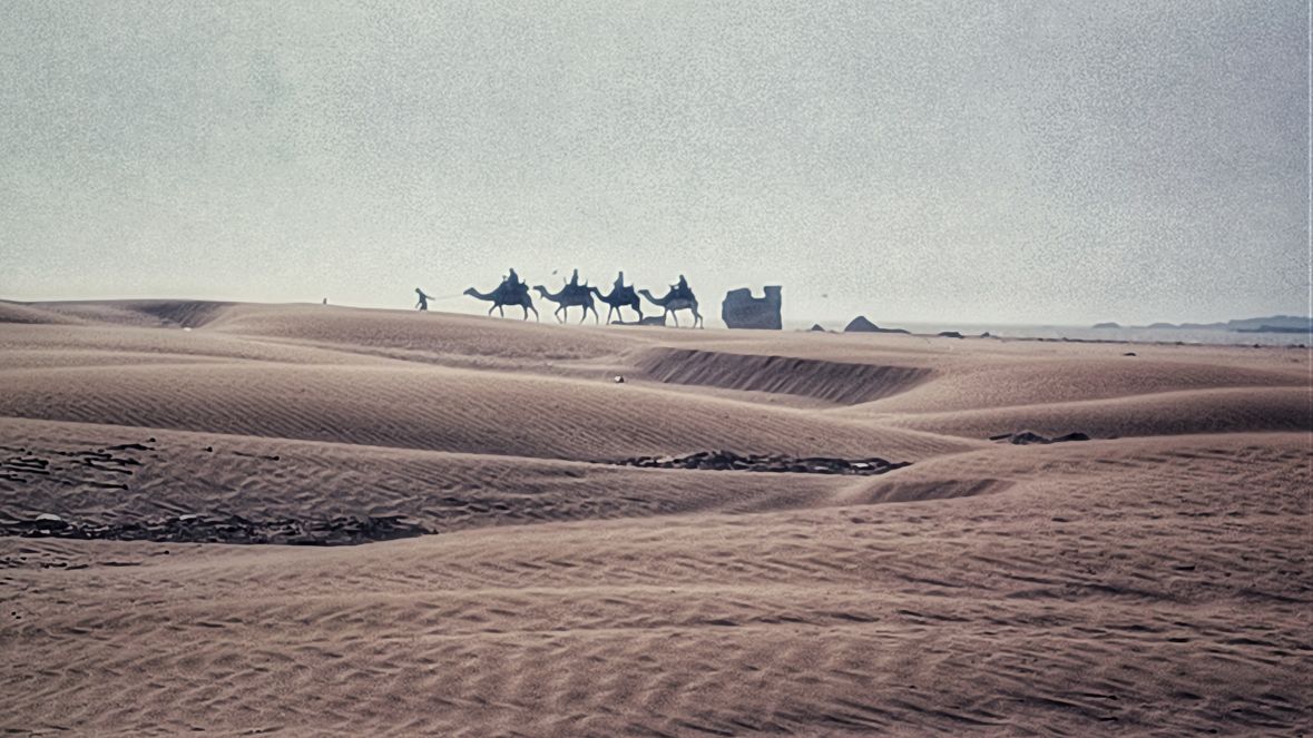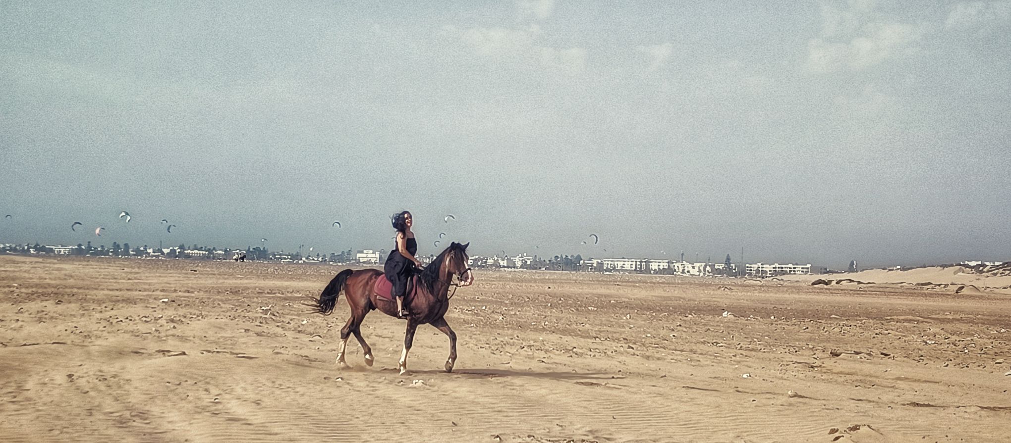 Da das gestrige Café einen sehr gediegenen Eindruck machte, brauchten wir nicht lange überlegen, wo wir zum Frühstück abchillen wollten. Wir wußten auch, was wir nicht wollten: noch mal ins Herz von Essaouira. Etwas südlich gab es 3 Dinge als Anlaufpunkte, welche die Basis für unseren heutigen Ausflug bildeten. Beginnen wir mit Nummer eins: das Jimi Hendrix Café. Angeblich soll es den best guitar player of the world 1969 hier her verschlagen haben. In Essaouira war er wohl, und vielleicht erwähnte der Muezzin ihn beim Abendgebet. Und das hat man dann vielleicht 4km vor der Ortschaft noch gehört. Sei es drum. Ebenfalls ‚angeblich‘ inspirierte die nahegelegene Ruine des Dar Sultan Palace den Maestro zum Song ‘Castles Made Of Sand’. Gut möglich, aber nur, wenn er 2 Jahre zuvor die Reise bereits geplant hätte und auf einer Landkarte die Ruine zur Kenntnis genommen hätte. Wobei wir hier schon bei Punkt zwei unseres Ausflugs wären, der eben erwähnten Ruine und einstiger Sitz von Moulay Abderrahmane Khalifa, dem Herrscher (1822-1858) von Essaouira. Erbaut von holländischen Fachleuten nach europäischem Stil mit richtigen Glasfenstern, ist vom damaligen Glanz nicht mehr viel zu sehen. Aus dem Sand schauen hier und da noch ein paar Mauer- und Gebäudereste und regen die Fantasie an. Weiter gehts zum dritten Punkt durch ein ausgetrocknetes Flussbett und über Dünensand, aber nun wirklich nicht mehr vorhandenem ehemaligen portugiesischem Fort am Strand. Ein paar Felsen, ein Fort? Naja, zumindest liegt/steht da was im Wasser. Am Strand gehts wieder nordwärts, welcher von Reitern auf Pferden und Dromedaren gesäumt ist. Ebenso wie von Reitern auf dem Wind im Meer, die bei heftigem Wind optimale Bedingungen fürs Kitesurfen haben. Damit ist dann auch unser Tagessoll erfüllt und wir schlendern wieder Richtung Unterkunft, wo noch eine kulinarische Überraschung auf uns wartet. Unser Herbergsvater hat nämlich für uns gekocht. Marokkanische Küche: Couscous mit Gemüse und Fleisch. Und nach dem wir es uns haben munden lassen, legen wir die Beine hoch, und sabbern fröhlich vor uns hin. Oder so ähnlich. Bis das Licht ausgeht, draußen die Kinderparty ihr Ende findet, und wir die Augen schließen.
