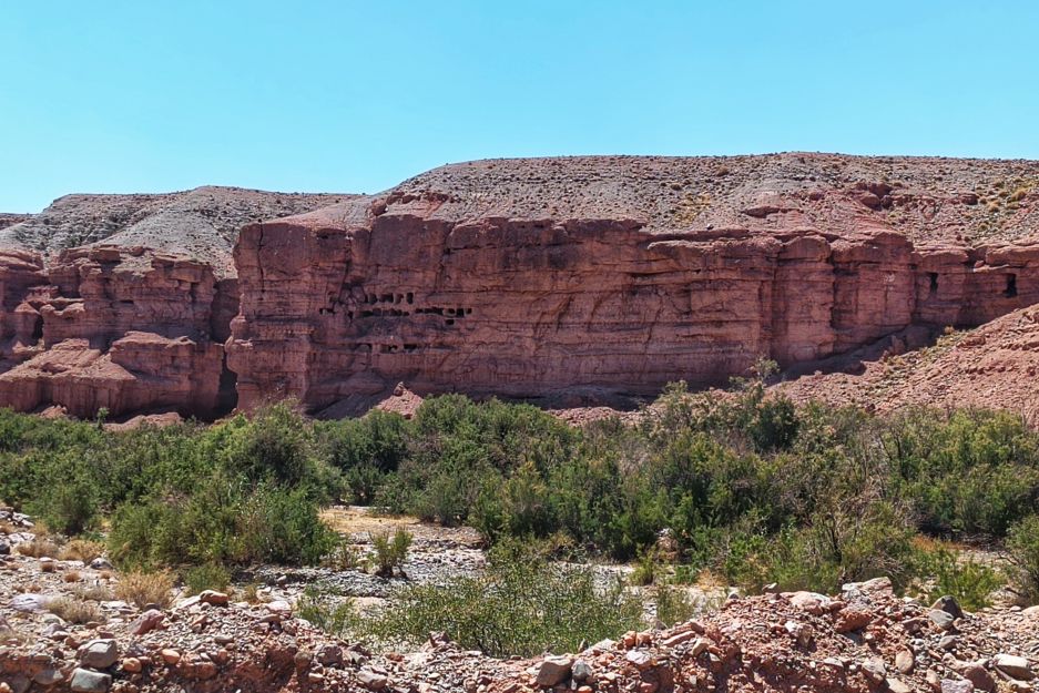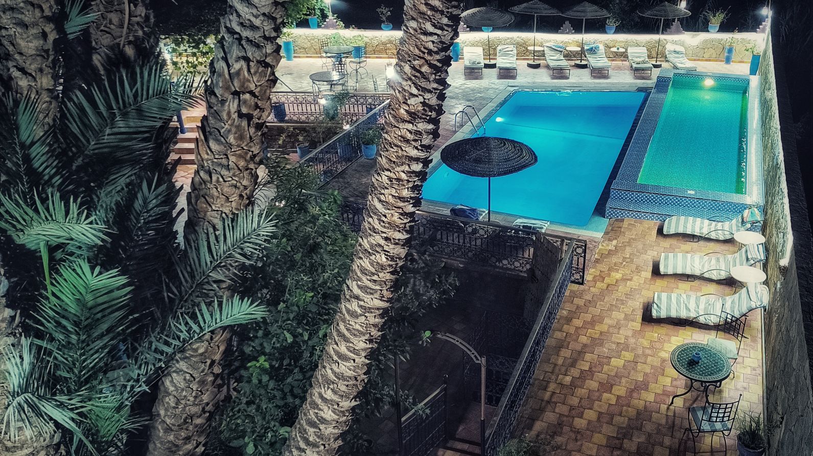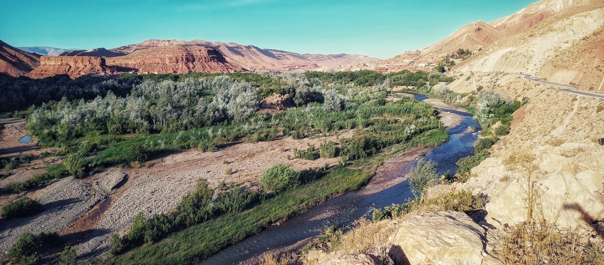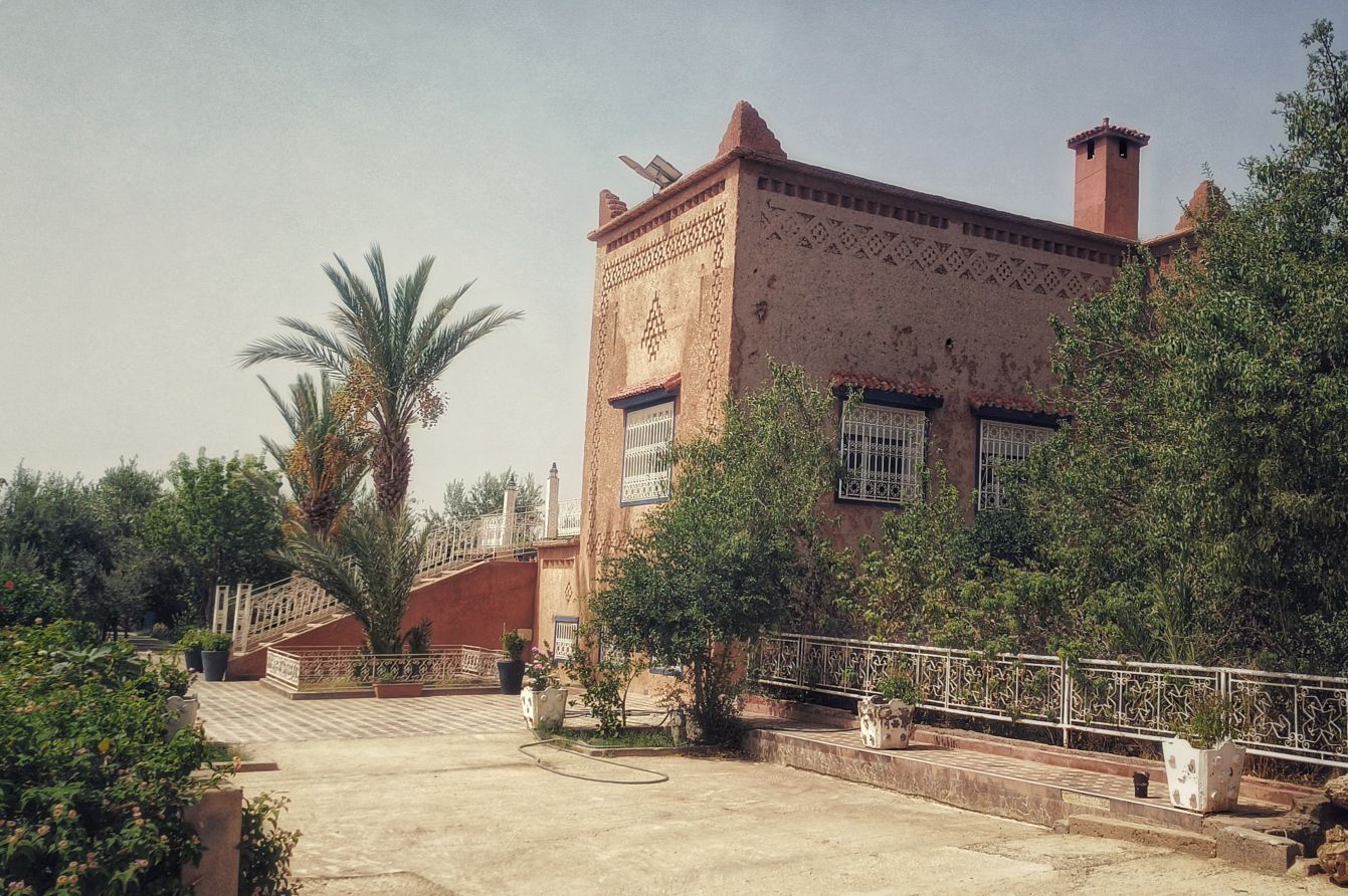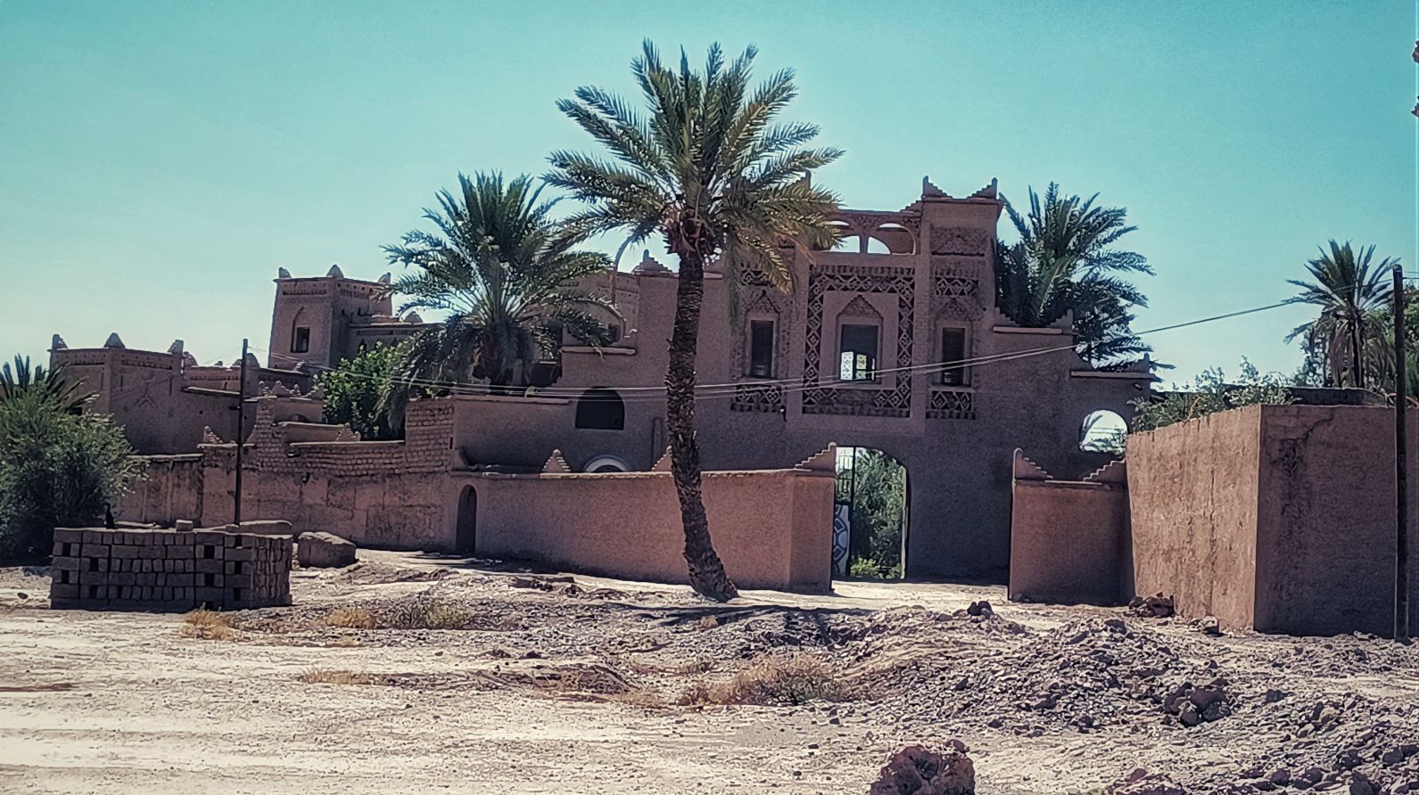 Ein Frühstück, ein paar Feigen, und ein paar Wanzen oder Flöhe gibts zum Abschied. Doch bevor es los geht, ist auch gleich wieder Schluß. Das ganze Fahrzeug ist völlig instabil. Ich vermute Luftverlust in den Reifen. Und der Sohnemann vom Herbergsvater lotst mich zum Dorfkonsum mit angeschlossenem Werkstattservice. Das Flair entspricht den beiden Werktätigen in diesem Ambiente: historisch wertvoll. Doch die Luft im Reifen, die noch reichlich vorhanden ist, ist es nicht. Ich muß den helfenden Mitarbeiter höflich bitten, daß mit den 5 Bar doch mal bitte zu unterlassen. Statt dessen entdecke ich zwei gebrochen Speichen im Hinterrad. Und die Inspektion der restlichen Speichen offenbart eine mittlere Katastrophe. Alle Speichen locker! Wie konnte ich es gestern Abend überhaupt noch bis hierher schaffen? Und vor allem zeigt es, wie sensibel ich am Ende einer Tagestour auf „kleine“ Ungereimtheiten am Fahrzeug reagiere. Ich leihe mir ein Maulschlüssel, packe alles Gepäck ab, und mache mich an eine notdürftige Reparatur. Zwar ziehe ich möglichst gleichmäßig alles wieder an, kann aber nicht auf genaue Zentrierung dabei achten. Innerlich fluchend setzt aber auch der Lerneffekt ein: nie wieder Edelstahlspeichen! Auch nicht, wenn sie 4,5mm dick sind. Im Konsum gibts noch einen Saft kostenlos nach getaner Arbeit, und dann mach ich mich in den Staub. Ja, richtig, in den Staub, nicht aus dem Staub. Jetzt gibts Wüstenfeeling, auch wenn ich mich nicht unmittelbar in der Sahara befinde. Aber zwischen Atlas und Sahara ist der Übergang fließend. Und so ziehe ich meine Kreise durch kleine Canyons und Linien durch wüstenähnliche und endlosen Ebenen. Aufregend, mal durch so eine Landschaft mit der AWO zu „cruisen“. Der Gedanke, jetzt eine Panne zu haben, wird soweit weggeschoben, wie noch nie. Ich sehe das weiße Skellet – also meins – neben einer vom Wind und Sand zerfressenem Fragment, was mal eine Maschine oder Automat gewesen sein muß. Und marokkanische Archeologen werden vielleicht in 100 Jahren versuchen, daß Rätsel dieser exotischen Maschine und des daneben liegenden armen Irren zu lösen versuchen. Ein aus Russland zu Hilfe gerufenes Archeologenteam wird dann ziemlich schnell feststellen: Автовело! Zunächst muß ich mich aber wegen einer Tankfüllung wieder Richtung große Hauptstraße begeben. Und anschließend gehts sofort wieder zurück, durch die Wüste, ab in die Berge. Erwähnte ich schon die atemberaubende Schönheit des Atlas-Gebirges? Leider ist der Tag zu kurz, um alles vollends genießen zu können. Und den krönenden Abschluß, offroad auf über 3000m zu kommen, muß ich aus sicherheitsrelevanten Gründen wegen Anbruch der Dämmerung leider canceln. Ein letzter Funken an Restvernunft hat doch noch obsiegt. Ein fürs Ego persönlicher Rekord mit der AWO geht mir flöten, aber die Rauheit und Schönheit, dieses Impossarium der Berge, Schluchten und Hochebenen ist auch ohne 3000m der Gipfel der Genüsse! Über die Gefährlichkeit so mancher schwieriger Abschnitte schweige ich mich an dieser Stelle aus, meiner Mama wegen. Sie muß nicht wissen, daß es Stellen der Unumkehrbarkeit gab, daß manches Stück Schotterpiste auch immer etwas Glück braucht, daß ein Bruchteil einer Sekunde Unaufmerksamkeit eine gewisse Fallzeit ins Tal beinhaltet, noch mal über den eben gemachten Fehler nachzudenken. Die letzte Stunde bis Tinghir gehts auf langweiliger Straße in die Dunkelheit hinein. Und die Ortschaft, und nicht nur diese, macht Abends kein Spass. Denn ist die Sonne untergegangen, beginnt für den Marokkaner das Leben. Man begibt sich zum Einkaufen oder trifft sich einfach. Wenns sein muß, auch mitten auf der Straße. Ein Highlight hab ich mir dann aber doch noch aufgehoben. Ich komme zwar völlig erschöpft kurz hinter Tinghir an mein Ziel, aber hey, Leute, nach so einen Tag darfs auch ein bißchen Pool zum Abschluß sein!