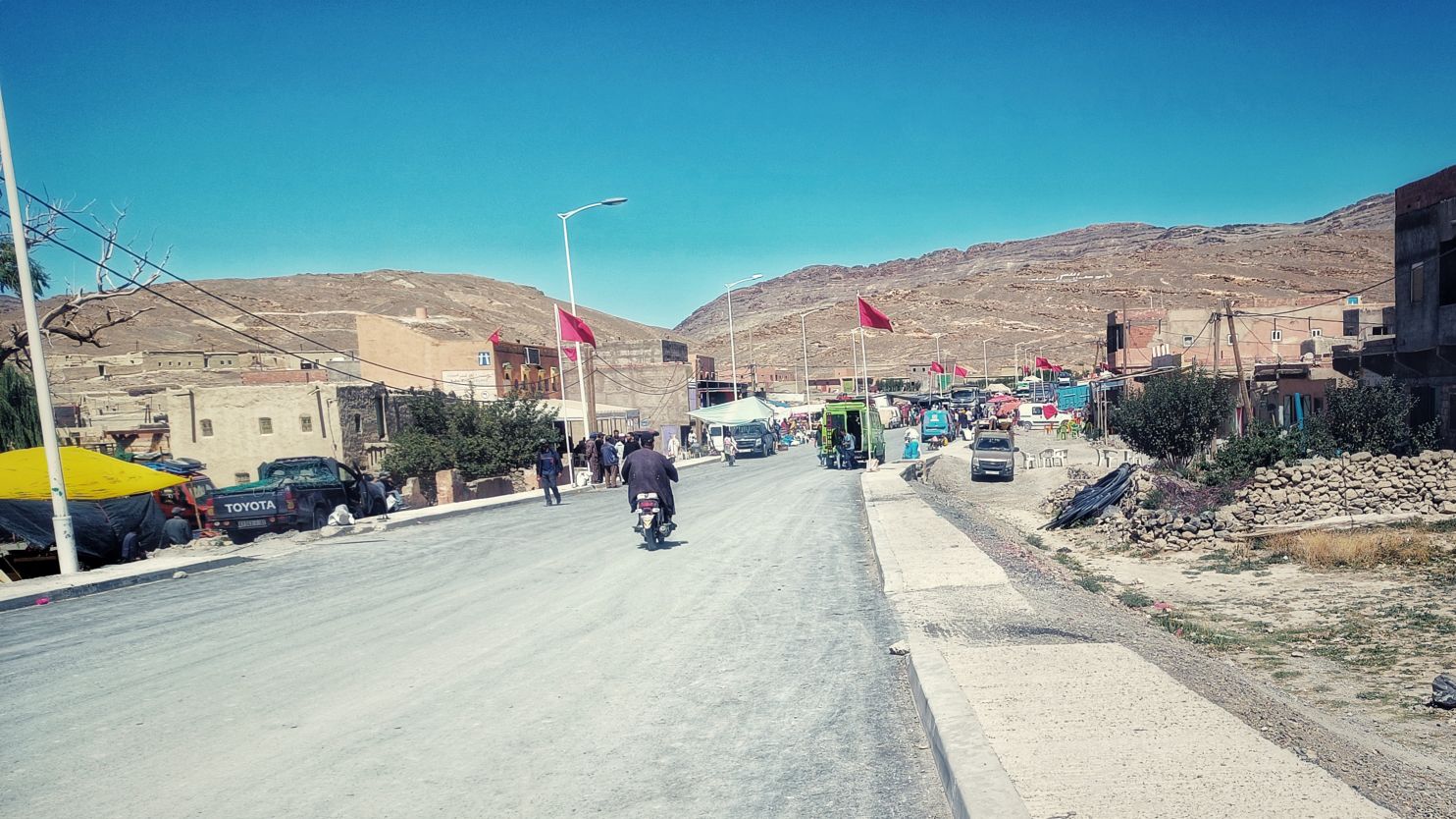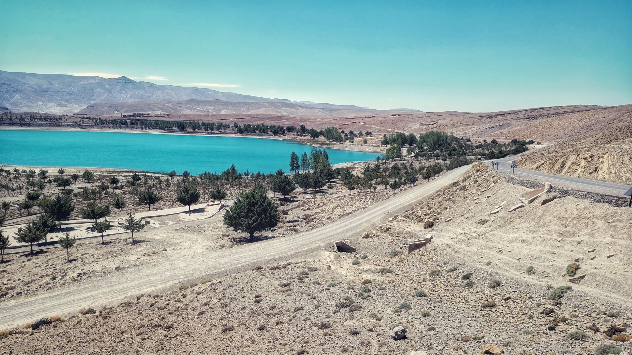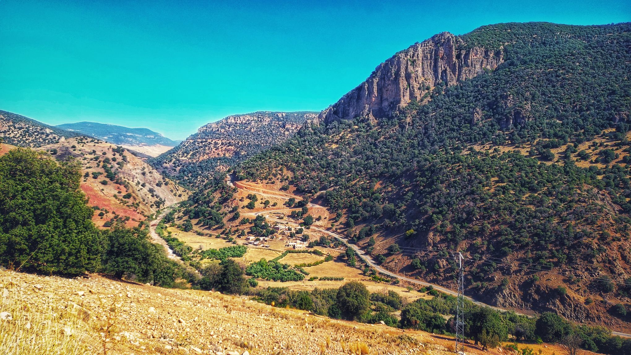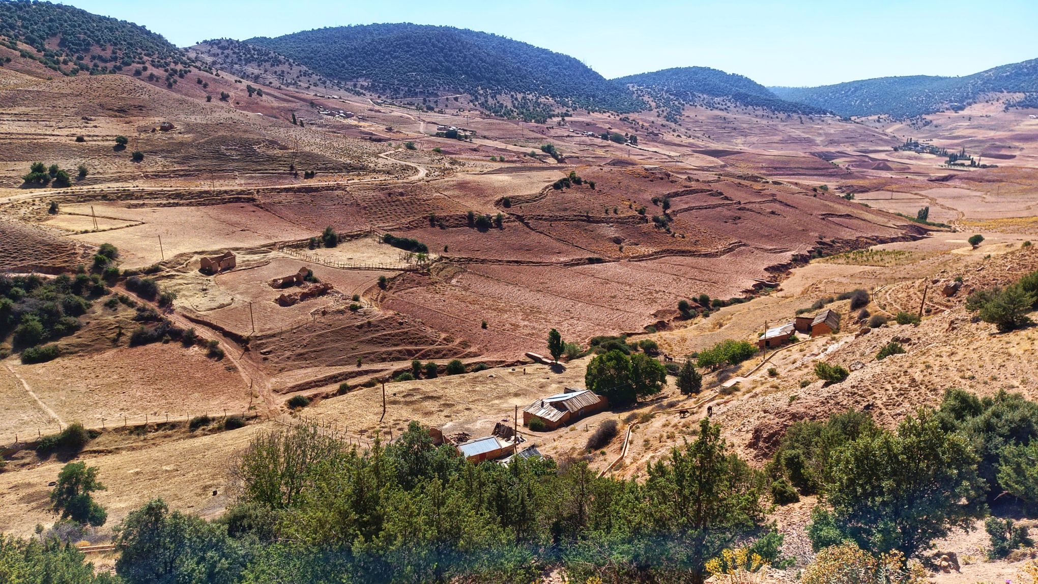 Wenn man dem Spektakulärem langsam den Rücken kehrt und der Kompass in die Richtung weißt, in der der Abstand zur alten Heimat wieder kürzer wird, setzt unwillkürlich die Melankolie des Abschiednehmen ein. Aber so schnell wird in Steppis Fall nicht geschoßen. Der Vorteil des Motorradreisens ist, vorbei ist, wenn ich zu Hause auf dem Balkon liege und mir alles noch mal durch den Kopf gehen lasse. Bis dahin ist REISE, und das ist schließlich das Ziel. Nix 12 Stunden Flieger, Trombosegefahr, und am Checkin am Flughafen ist die Stimmung am Arsch. Die Landschaft ist absolut abwechslungsreich. Hinaus aus der rotbraunen schroffen Gebirgsstruktur des Atlas-Gebirges geht es in eine gelblich-ocker-farbene Berglandschaft, die sich immer mehr verläuft, aber immer noch erstaunlich hoch liegt. In dieser augenscheinlich dünn besiedelten Gegend weist mich ein sehr betagter Tankwart darauf hin, daß er Berber sei. Und wiederholte dies auch noch mal, um es auch ja zu bekräftigen. Es schien ihn sehr wichtig zu sein, mir dies mitzuteilen. Nun kenne ich mich in der marokkanischen Bevölkerungsstruktur überhaupt nicht aus, aber ein späterer Blick ins Internet verrät mir, daß hier wohl die zentrale Gegend der Barbaren ist. Ich hoffe, war! Einen dritten starken Wechsel der Landschaft erlebe ich im Parc National De Khenifra mit seinem Zedernwald. Viele Bäume = ein Wald. Der erste auf meiner Reise durch Marokko. Und als Sahnehäubchen – weil, ist ja Afrika – bekomme ich ohne Glaswand oder Gefängnisstäbe Berberaffen präsentiert, welche hier und da Straßenabschnitte bevölkern und dort ihr Jagdrevier haben. Das sieht dann so aus, daß Affe mit offenem Mund auf der Straße sitzt, und wenn er Glück hat, fliegt das Futter aus den vorbeifahrenden Autos direkt ins Maul. Und so endet ein weiterer abwechslungsreicher Tag bei Dinner und Sonnenuntergang auf einer Terasse mit Blick auf Azrou.