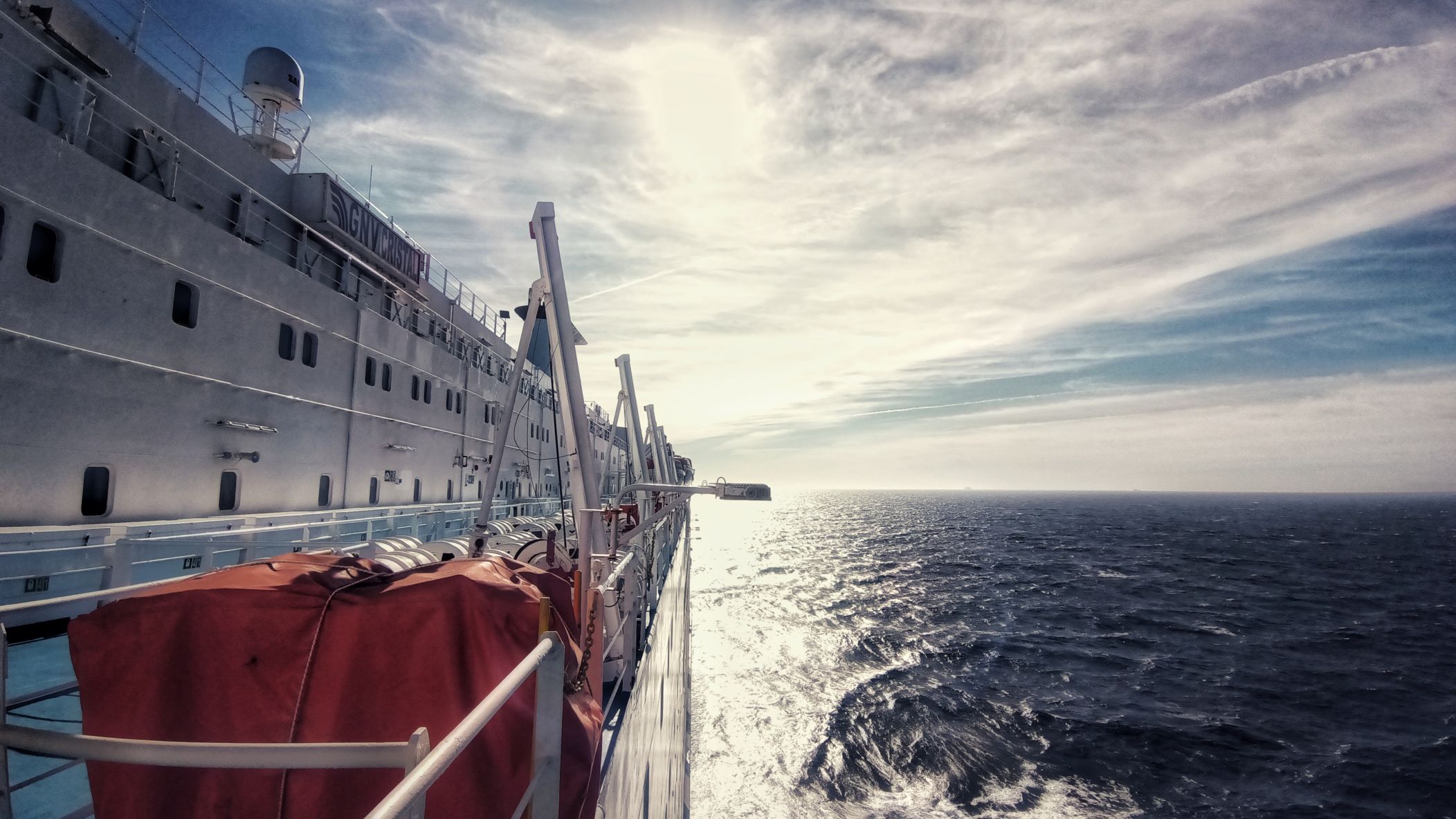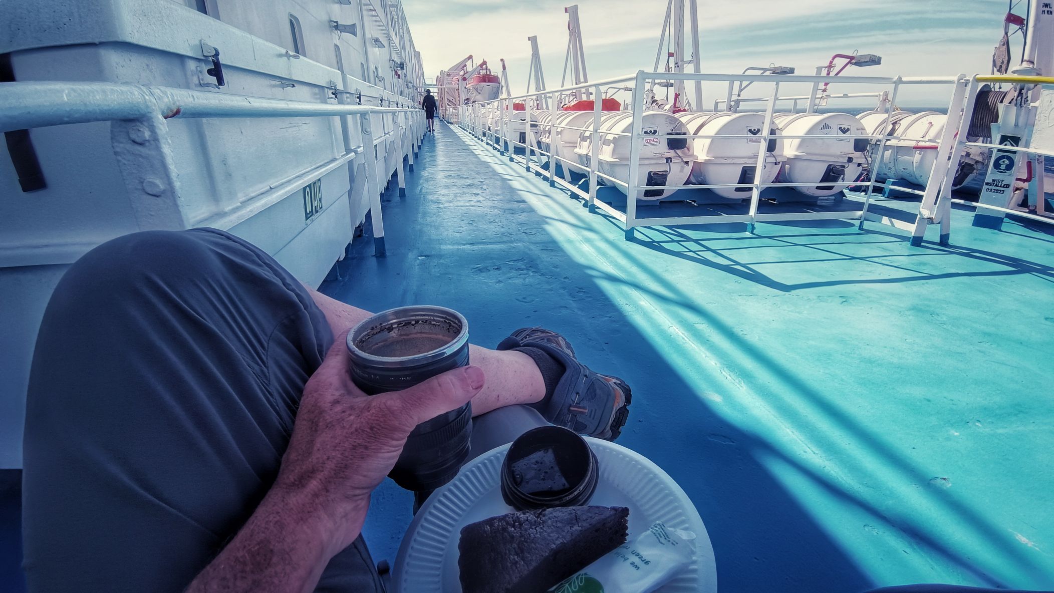 Der Wecker klingelt. Mit das furchtbarste, was es im Urlaub gibt. Aber der Checkin schließt für meine Verhältnisse sehr früh um 10.30 Uhr. Im Gegensatz zur Einreise komme ich diesmal sehr schnell durch die Kontrollen. Dafür stehe ich dann über 3 Stunden in der prallen Sonne, bis es endlich aufs Schiff geht. Ist das marokkanische Mentalität? Die Autos laufen mit Klimaanlage und als Biker schmort man in der Sonne? Als es endlich an Board geht, traue ich meinen Augen nicht. Direkt an der Auffahrrampe fängt die Polizei an, Kontrollen durchzuführen und lässt Kofferräume öffnen und Drogenhunde ihre Arbeit verrichten. Meine Fresse, die haben ein riesiges Hafengelände und direkt am Schiff fangen die mit Kontrollen an? Gelinde gesagt ist das selten dämlich, zumal 4 Motorradfahrer weiter in der Sonne schmoren. Un-glaub-lich! Endlich an Board, suche ich die Spanngurte, aber es gibt keine. Während die anderen Biker nach Abstellen ihrer Kräder Richtung obere Decks verschwinden, schwant mir böses. Irgendwann wird ein Angestellter vom allgemeinem marokkanischen Festspannkommando kommen und wird alles knackefest verzurren. Ich hab zwar halb versehrt die Offroadpisten im Atlas überstanden, aber in Frankreich werde ich wohl ein deformietes Etwas von Board schieben, welches nicht mehr in der Lage ist, geradeauszufahren. Falls es dann überhaupt noch als ein ganzes Teil existiert. In meiner Kabine gehts mit leichtem Sonnenstich sofort auf die Matraze und Augen zu. Am frühen Abend dann besorge ich mir im Boardbistro heißes Wasser und begebe mich an einem windgeschützten Platz nach draußen und beginne endlich, die noch fehlenden Reiseerlebnisse niederzuschreiben. Das heiße Wasser bekommt man kostenlos, und in selbiges kommt mein köstlicher Kaffee. Sähe auch etwas albern aus, wenn Steppe mit Benzinkocher auf Deck hier sein eigenes Süppchen, bzw. Kaffee kocht. Auf der anderen Seite, so etwas wie hier am Schiff, habe ich auch noch nicht erlebt und mit dem Kocher würde ich kaum auffallen. Es scheint mir das reinste Vagabundenschiff zu sein. Alle Gänge und Nischen sind mit Bettlager zugestellt und teils verhangen. Da auch alle Kabinen belegt sind, vermute ich, hier sind mehr Menschen an Board, als sein dürften. Was jedoch zu später Stunde am schlimmsten ist, aber inzwischen nicht wirklich mehr überrascht: vor meiner Kabine, und sicher nicht nur vor dieser, entwickelt sich alles zu einem riesigen Kinderspielplatz. Der Lärm, ein Mix aus normalen Kindergeschrei, hysterischem Kreischen, und dem Schreien überforderter Eltern, ebbt erst nach Mitternacht pö à pö ab. Meine Schmerzgrenze ist erreicht und ich muß mich zwingen, keine dummen Sachen zu tun. Zwei Tage, zwei schwere Tage muß ich überstehen, und dann bin ich von diesem unsäglichem Lärm befreit. Auch wenn es an dieser Stelle sehr verbittert klingt und ich selber als Kind ebenfalls nie ein Ende finden wollte, aber in diesem Moment bin ich froh aus einer Kultur zu kommen, in der Kinder auch spät ins Bett dürfen, und nicht schon früh sich lang machen müßen. Nicht früh um 1 oder um 2! Stell dir vor, man dürfte an Board Auto fahren, dann wäre hier noch bis um 4 Palermo! Zum Abendbrot spare ich mir das teure Restaurant, nach den kulinarischen Erfahrungen der Hinfahrt sowieso. Es gibt am Morgen gekaufte Teigwaren mit gutem Speck aus Österreich, dazu etwas Obst und Joghurt. Da hält an Board nichts mit hier. Zumal ich meinen Speisekoffer wieder auf Vordermann gebracht habe und anständig aufgefüllt habe. Und im Kino heute Abend kommt die Fortsetzung von „Das Meer“.