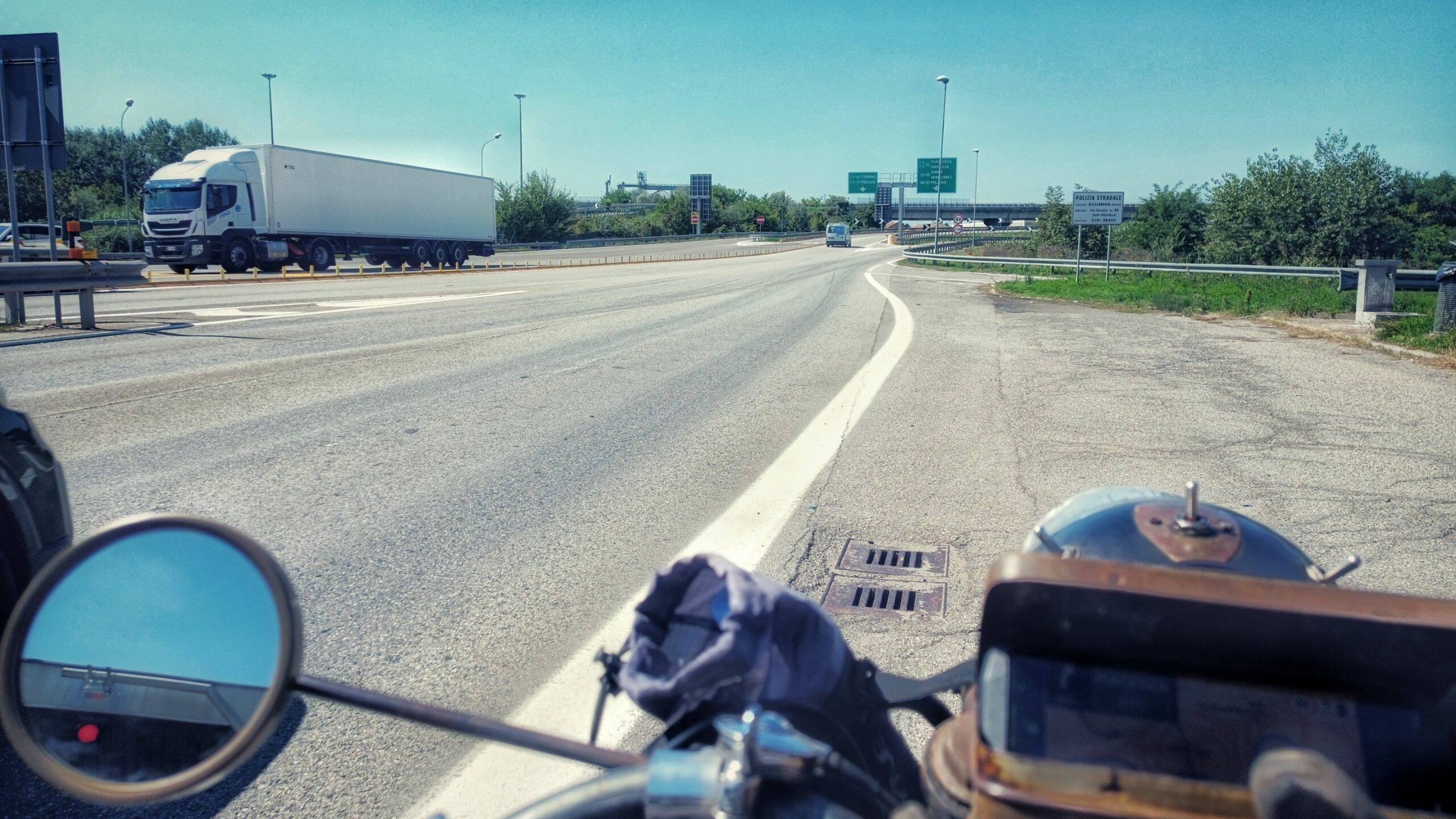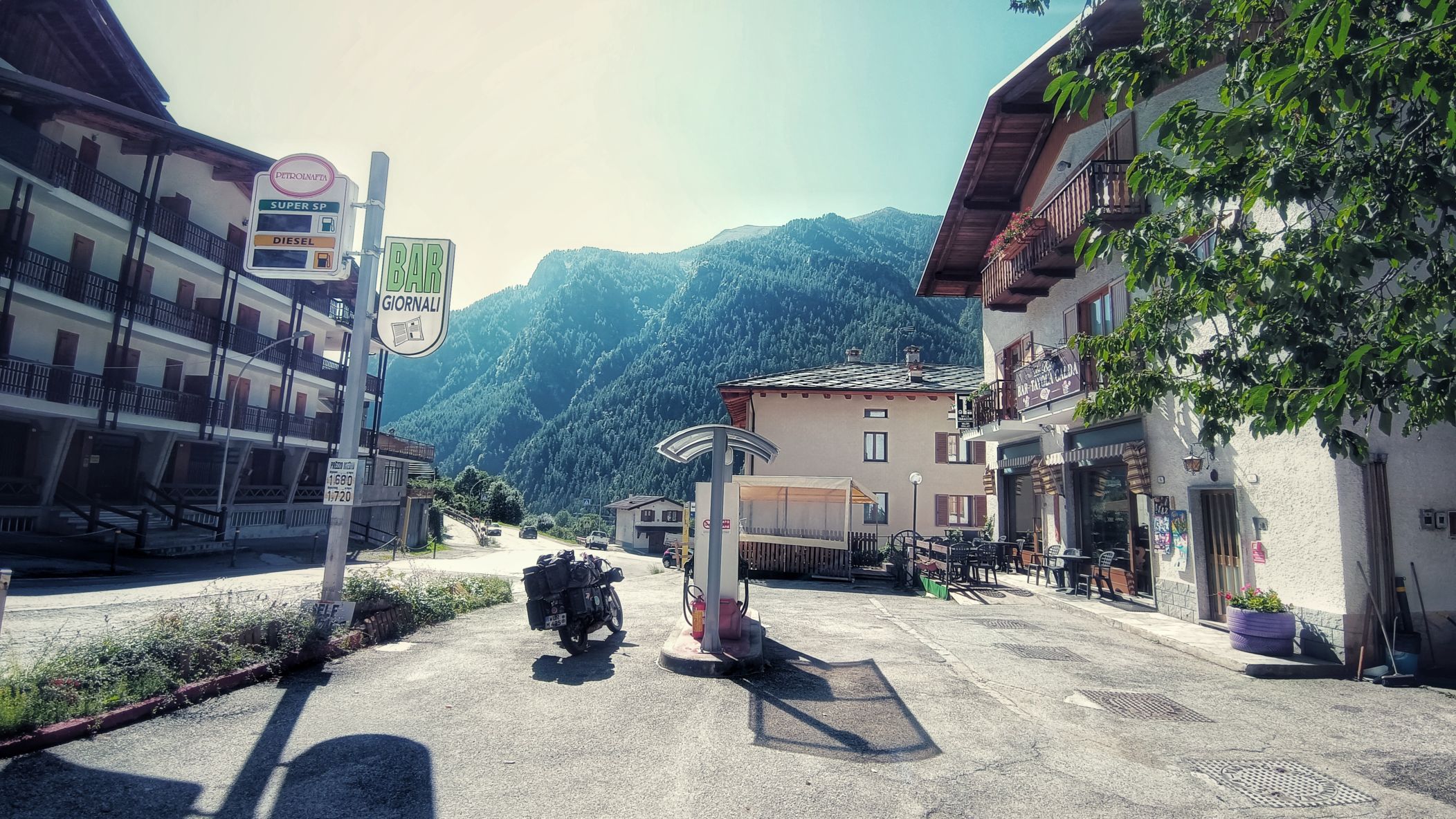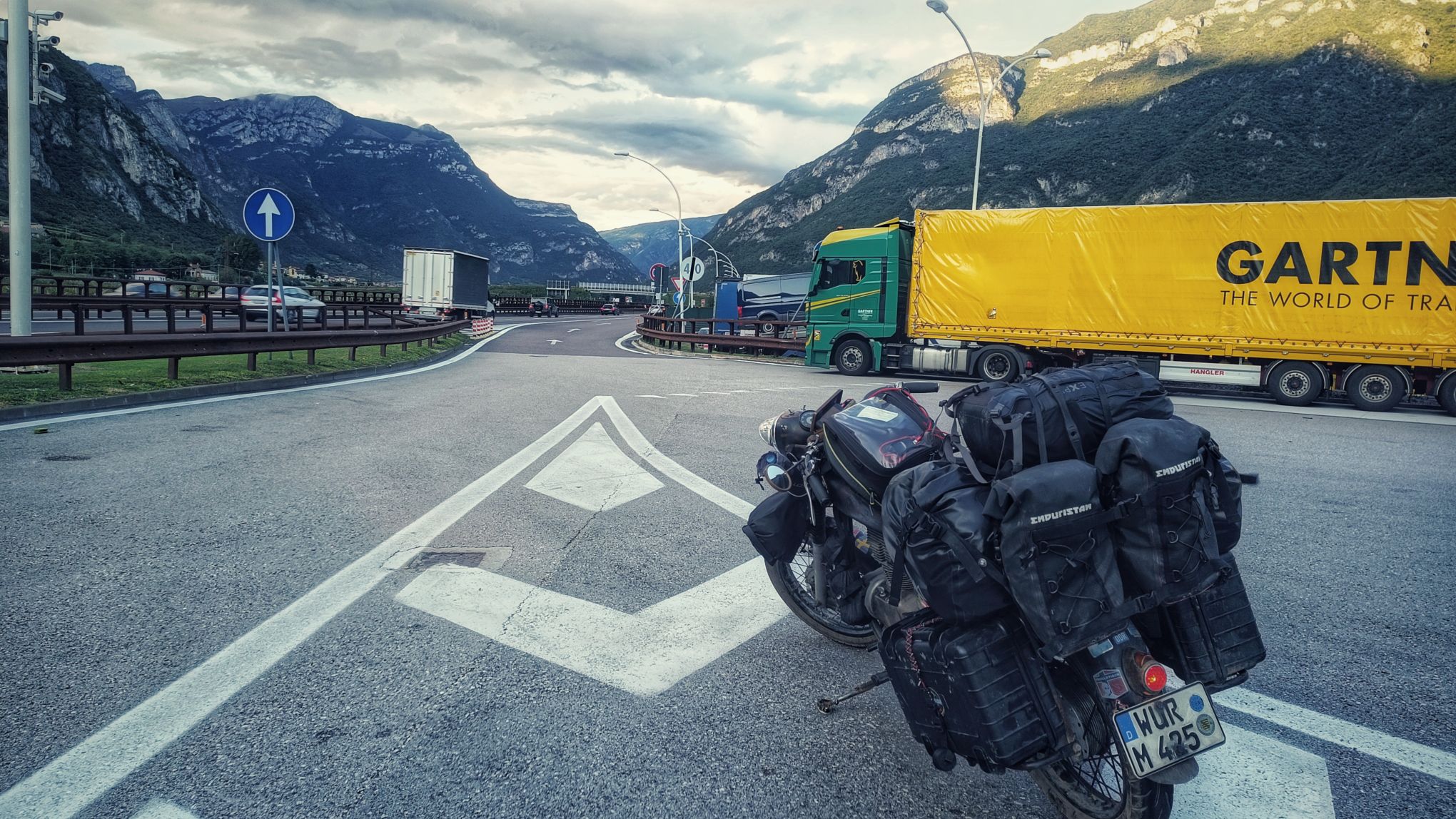Die Überschrift sagt eigentlich alles. Raus aus Frankreich die Serpentinen hoch, hinein nach Italien die Serpentinen runter. Auf Autobahn und Landstraße den schnellsten Weg in die Alpen gewählt. Und als Sahnehäubchen am Ende des Tages die Serpentinen wieder hoch. Nur, warum fahre ich eigentlich in die Alpen, wenn ich aus den Alpen komme? Es begab sich im Jahre 2020, als ich mit der AWO das Timmelsjoch bestieg und ich dem dortigen Motorradmuseum auf dem Pass einen Besuch abstatten wollte. Leider war ich etwas spät dran und es hatte bereits geschlossen. Nein, die AWO war nicht zu langsam am Berg. Berghoch fahr ich gern gemütlich. Ein paar Monate nach meinem Besuch schlug das Schicksal erbarmungslos zu. Ein Feuer vernichtete die komplette Sammlung unwiderruflich. Um so erstaunlicher, daß keine 4 Jahre später das Museum wieder seine Pforten öffnete. Und da ich nun die Möglichkeit nutzen möchte, hieß es für mich, auf dem schnellsten Wege einmal quer durch Italien. Wäre natürlich viel imposanter, die Strecke nur durch die Berge zu fahren, aber da reicht einmal der Urlaub nicht mehr, und nach Marokko und Atlas zieht es mich mehr und mehr Richtung Heimat. Füße hoch, ausspannen, und im Kopf noch mal von vorn beginnen. Die Knochen kommen bereits an ihre Grenzen. Und jetzt, wo es abends in den Bergen wieder arschkalt wird – letzte Nacht hab ich bei 6°C gebibbert – sehne ich mich um so mehr nach meiner Badewanne. Aber soweit ist es noch nicht. Ein paar Tage Geduld, und noch ein paar schöne Serpentinen hoch und runter, und dann langsam ausrollen. Meine Unterkunft heute liegt genial auf dem Berg und ist eine Gemeinschaftsunterkunft. Und ich staune, daß außer mir kein weiterer Gast anwesend ist. Der Schlafsaal gehört somit mir allein. Um so erstaunlicher, da in der Gegend die Übernachtungsmöglichkeiten mindestens doppelt so teuer sind. Wißt schon, Bozener Gegend, Seidenschal und eingebautes Sonnenstudio im Porsche. Soll mir recht sein, wenn niemand den Wald sägt in der Nacht.