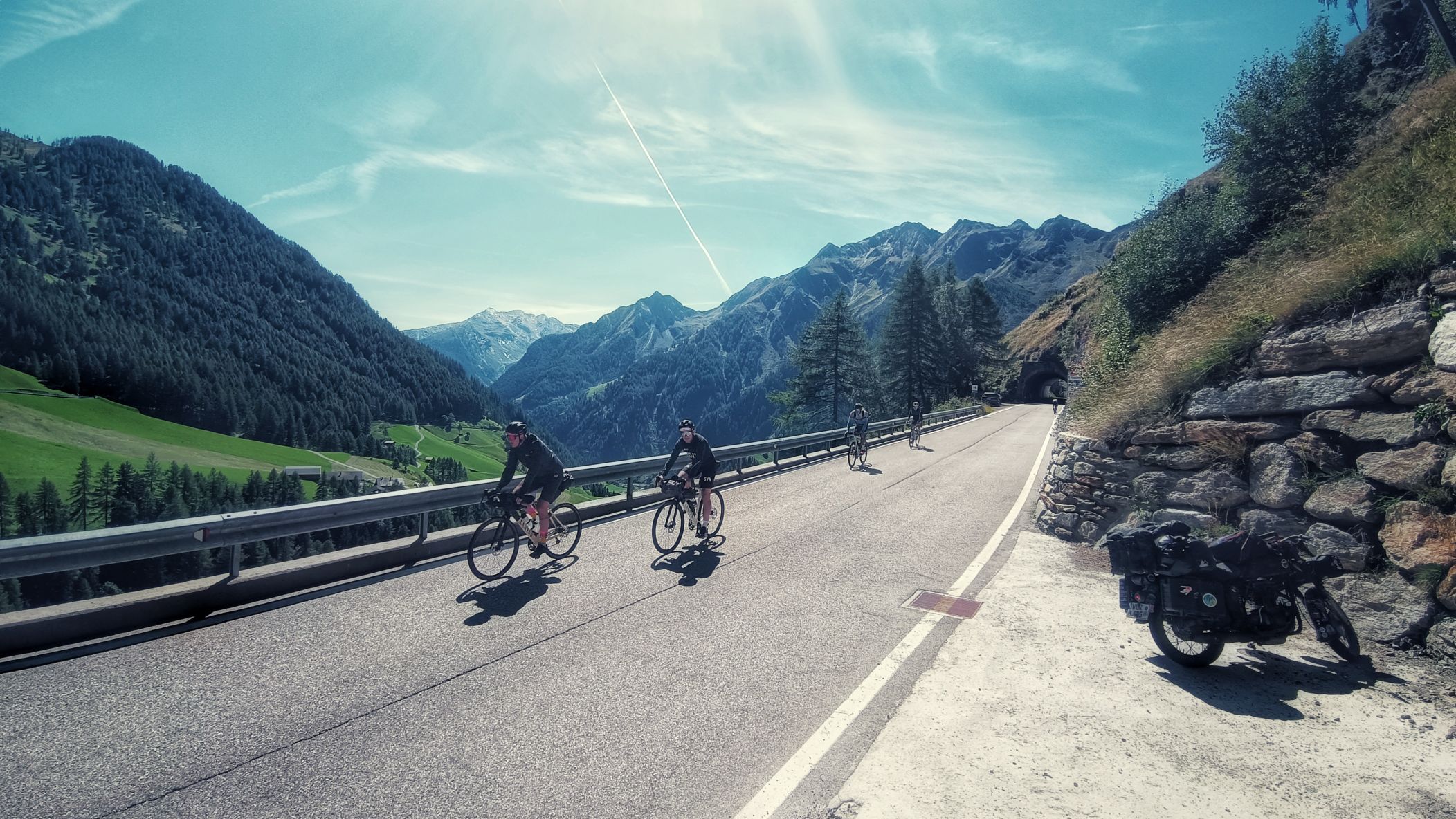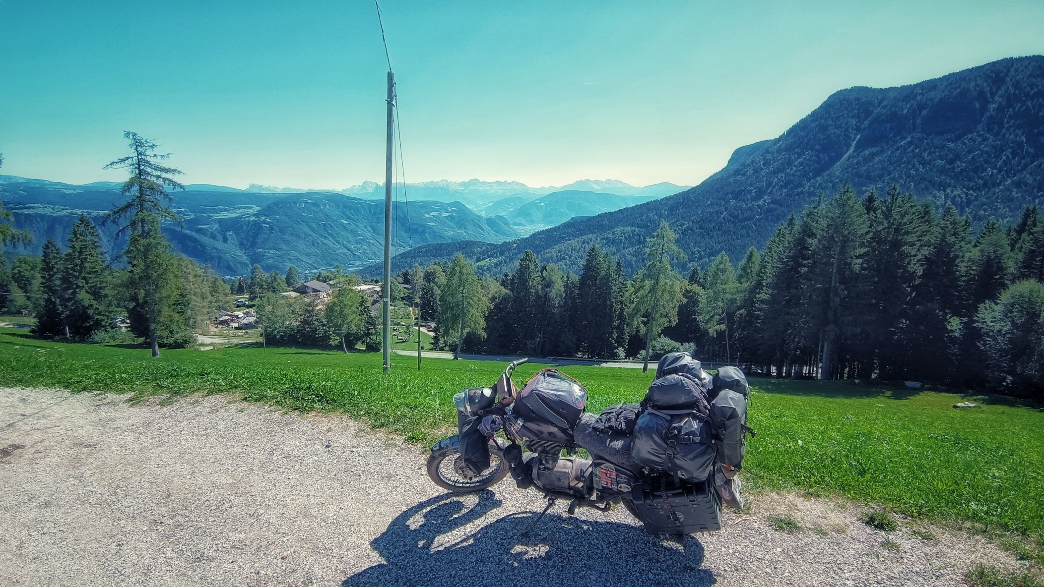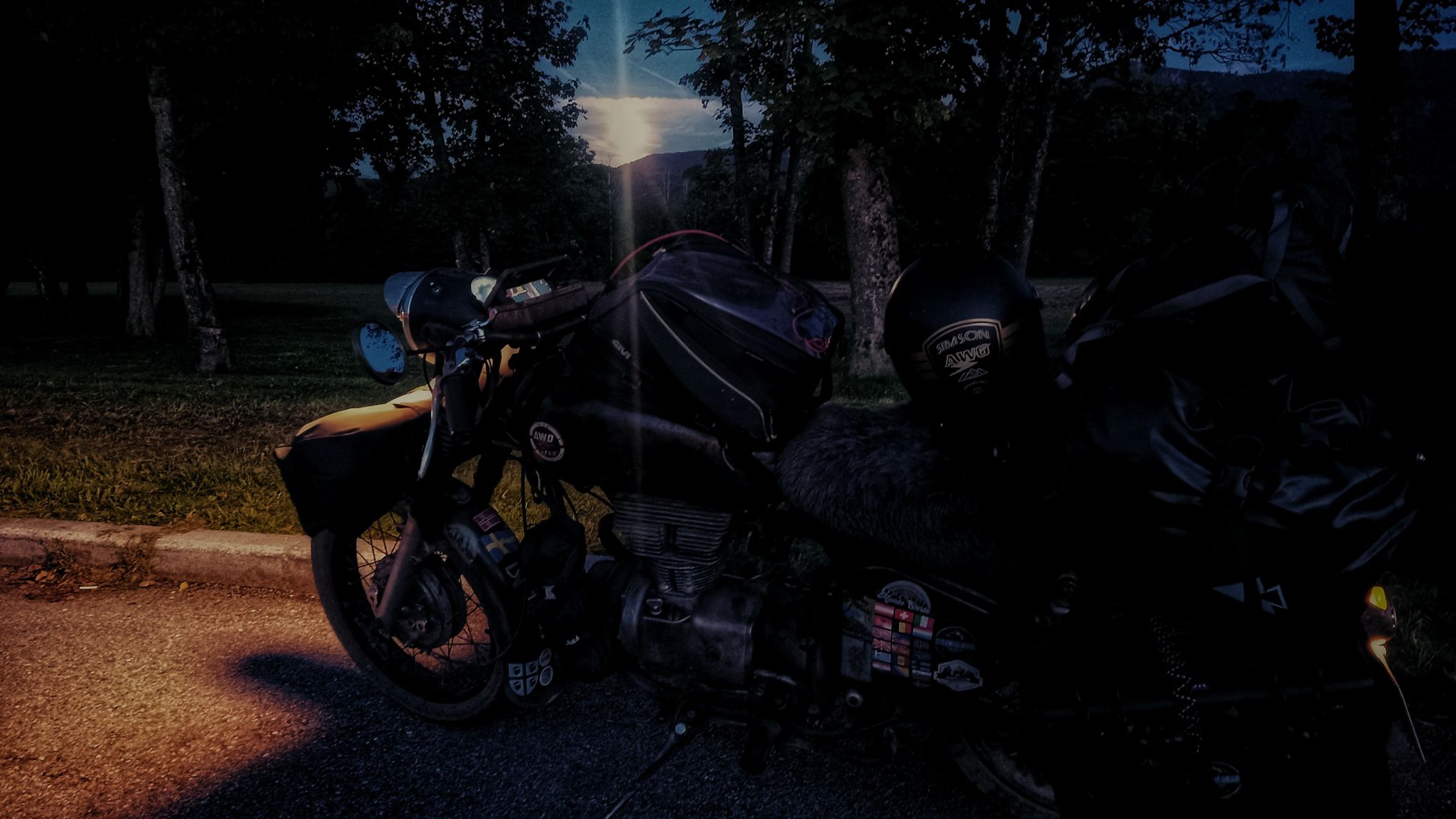 Zwei sehr schöne Dinge sind mir heute dennoch wiederfahren. Auf der Refugio Baita Fos-Ce, meinem Nachtlager auf dem Gebirgskamm zwischen Gardasee und Brennerautobahn, habe ich meinen Kaffee in abgeschiedener Ruhe in der wärmenden Morgensonne mit Blick auf die Alm und die Berge genießen können. Jetzt am Abend trauere ich dem Moment nach, denn zurückblickend auf den heutigen Tag hätte ich einfach da oben bleiben sollen und die Ruhe genießen sollen. Immerhin gab es ein Déjà-vu zur Reise vom letzten Jahr. Wie schon damals am vorletzten Tag, zog sich auch heute die Fahrt bis in die dunklen Abendstunden hin. Es war ein faszinierender Anblick, auf einmal den Vollmond in den Lücken des Bergmassivs der Alpen aufgehen zu sehen. Schwierig für mich, bei dem Anblick auf der Piste zu bleiben. Wenn nun nichts mehr passiert, folgt morgen die letzte Etappe einer aufregenden Reise suf den afrikanischen Kontinent. Doch erst mal ankommen, dann folgt das Fazit.